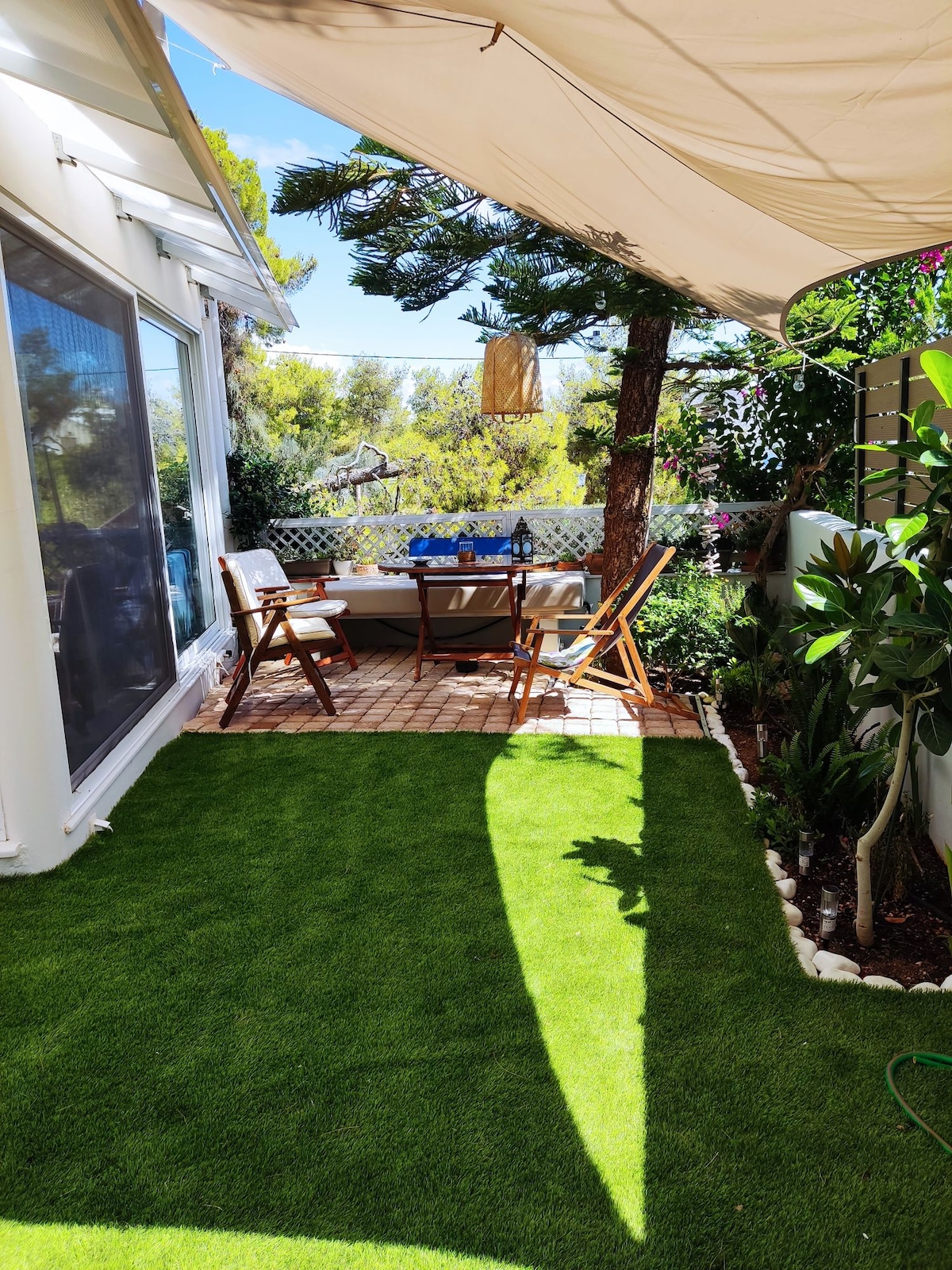 Un ático de estilo real verdaderamente único a solo 8 minutos del aeropuerto de Atenas. Al igual que un museo privado, cuenta con antigüedades, camas extragrandes de 200×220, una gran terraza privada y acceso a la azotea para disfrutar de vistas panorámicas y avistamiento de aviones. Ideal para familias, con mucho espacio y carácter que no encontrarás en ningún otro lugar de la zona. Las puertas de vidrio inundan el espacio con luz natural y enmarcan el cielo abierto, una estancia única que combina el encanto clásico con las raras vistas de la ciudad.