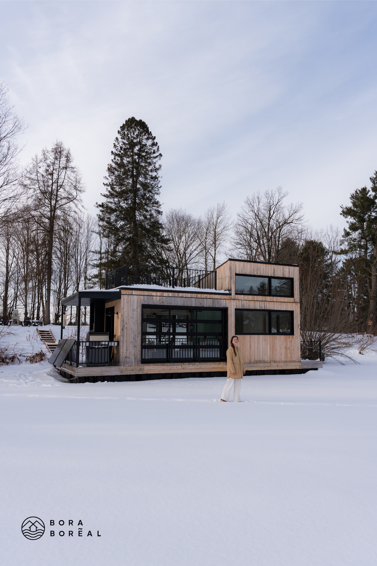 El rifugio es el lugar ideal para refugiarse. Un remanso de paz en plena naturaleza, rodeado de montañas hasta donde alcanza la vista. El Rifugio te ofrece la libertad de establecer un vínculo auténtico con la naturaleza y disfrutar de tiempo de calidad solo o con otros. Tan pronto como entres por la puerta, serás recibido en un ambiente cálido y acogedor. Las grandes ventanas ofrecen una magnífica vista de las montañas circundantes y a lo lejos podemos ver la punta del lago Mégantic.
