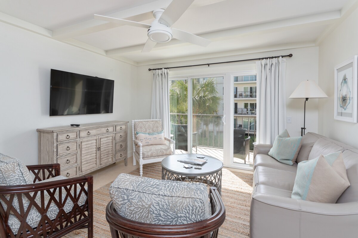 ¡Te damos la bienvenida a tu lujosa escapada costera! Nuestro apartamento recientemente renovado se encuentra en la exclusiva comunidad cerrada Beach Club en SSI, que ofrece a los huéspedes acceso a playas *privadas*, piscina junto al mar y mucho más. Nuestro apartamento está totalmente equipado con todo lo necesario para una estancia cómoda. La unidad 315 está situada en el tercer piso, lo que le da a este apartamento unas preciosas vistas a la playa, al patio y a la piscina. Estamos a pocos pasos de restaurantes, tiendas y a un rápido paseo en bicicleta de mucho más.