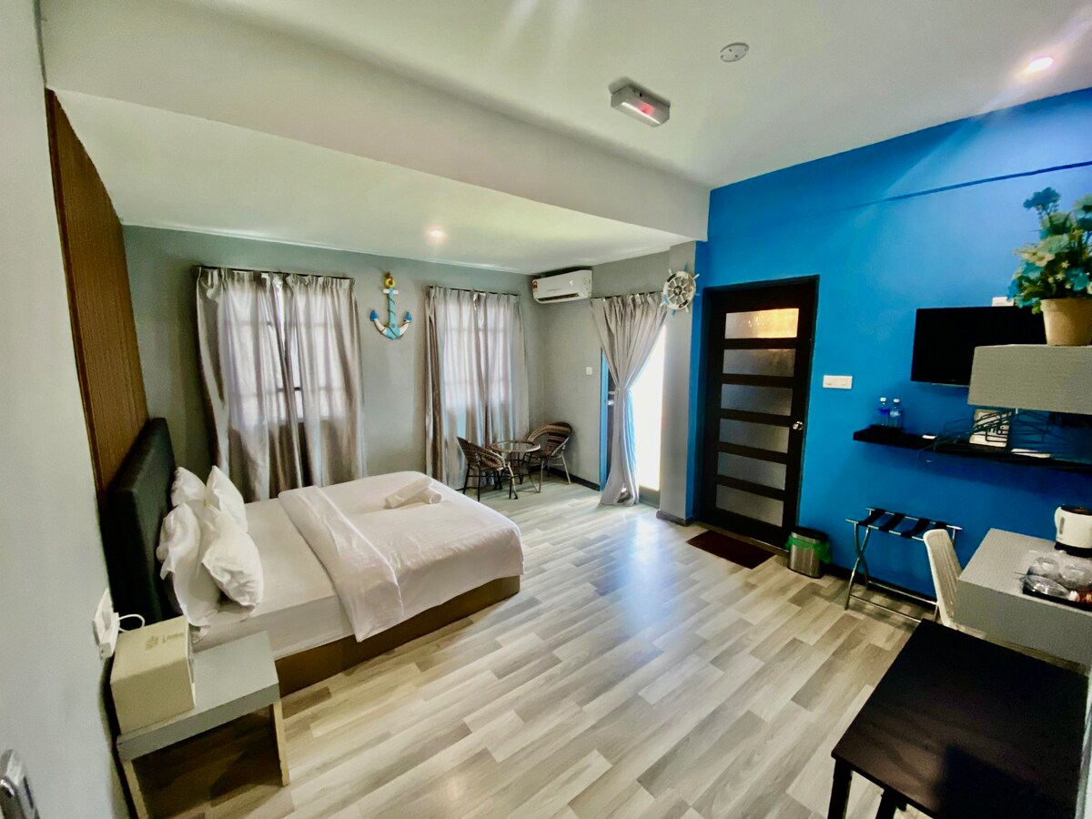 Ang Lee Holiday Stay 101, habitación con cama tamaño king, baño privado y balcón, a 700 metros del puerto turístico