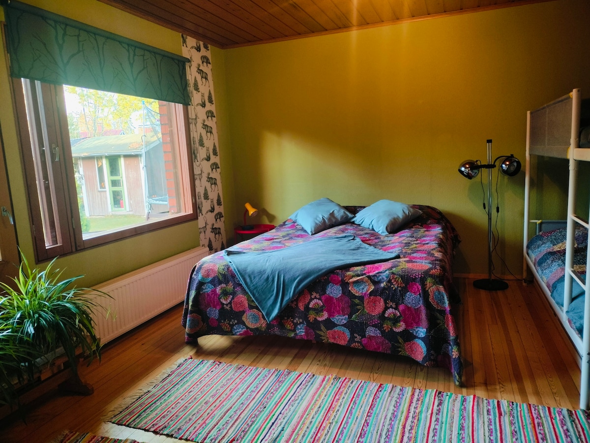 Relájese en esta casa tranquila y elegante cerca de los servicios. El apartamento tiene 99 m2 y 5 camas, una de las cuales es una cama de matrimonio, una cama desplegable y una cama individual. Tendrá a su disposición una parrilla de gas, además de otros electrodomésticos básicos. En las inmediaciones del apartamento hay maravillosas oportunidades para correr, tiendas y orillas del lago. Aproximadamente a 1 km del centro de Laukaa y a 24 km del centro de Jyväskylä. El patio tiene dos plazas de aparcamiento que pertenecen al apartamento.