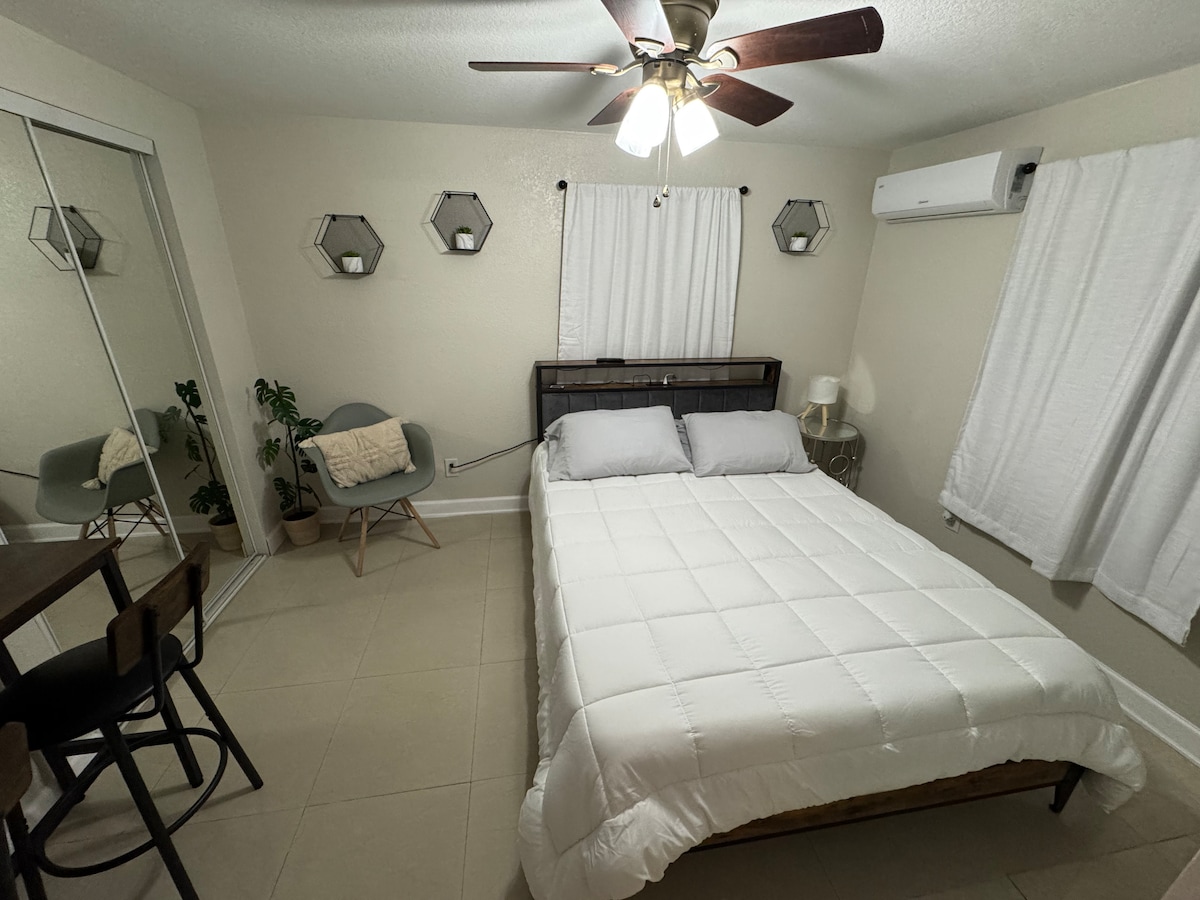 Apartamento independiente limpio y espacioso en alquiler en una ubicación céntrica en Tampa. Cerca de parques de atracciones, Lowry Park Zoo, Raymond James Stadium, centros comerciales y el aeropuerto internacional de Tampa. La unidad está unida a la casa principal, pero tiene una entrada privada, cocina completa y comedor, un dormitorio espacioso y cómodo. Wifi gratuito y fiable con un cómodo espacio de trabajo.