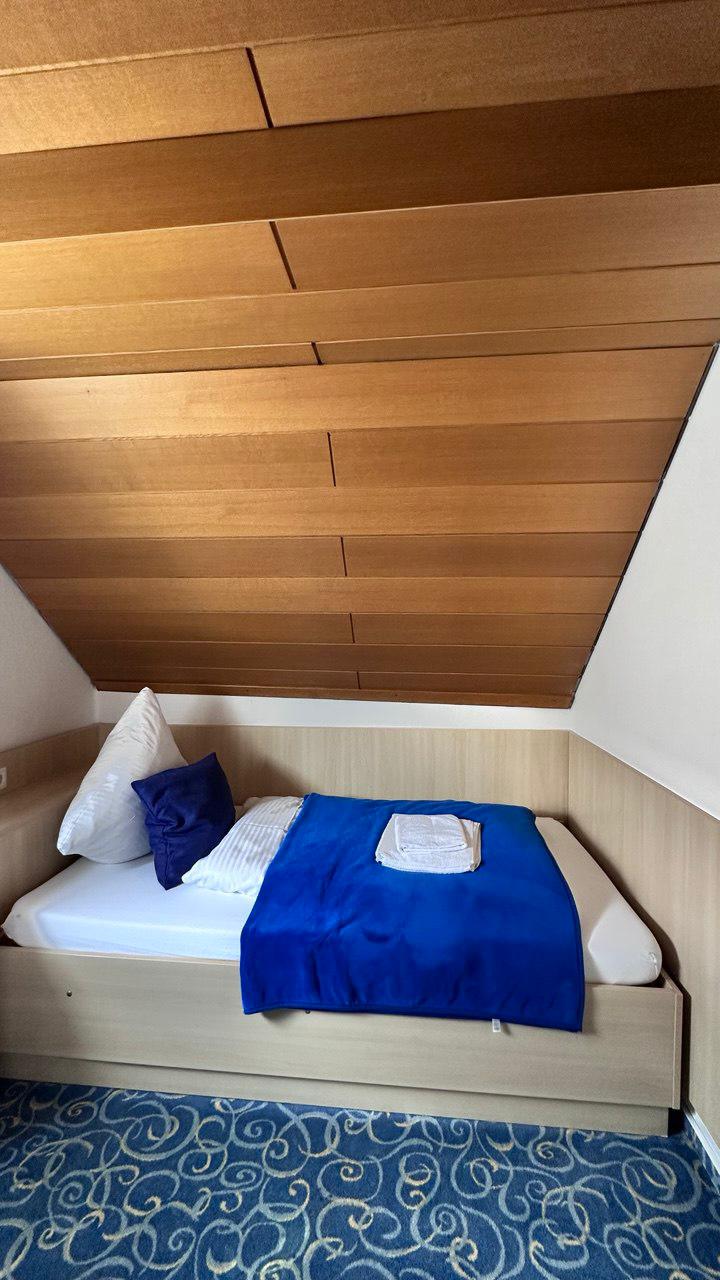 Este es un pequeño City Sky-Room en el corazón de Ulm. Nota: es muy sencillo y estándar, nada sofisticado. La habitación está en una planta superior sin ascensor, no hay cocina ni recepción 24/7. Lo que lo hace especial es solo la excelente ubicación céntrica, perfecta para explorar la ciudad a pie. Una buena opción si necesitas un alojamiento básico y asequible en Ulm.