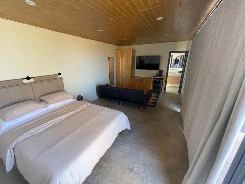 Habitación diseñada para un descanso placentero y disfrutar de amaneceres, atardeceres, el cielo, estrellas y la luna desde su terraza. Para dos personas, con cama Queen, aire acondicionado, ventilador, cafetera, agua caliente e internet satelital de alta velocidad. Barda perimetral para privacidad y seguridad. El baño tiene espejo, jabón, shampoo, acondicionador, toalla de mano y secadora de pelo. Disfruta viñedos y vinícolas en Valle . Seguro y cerca de lugares emblemáticos de la región.