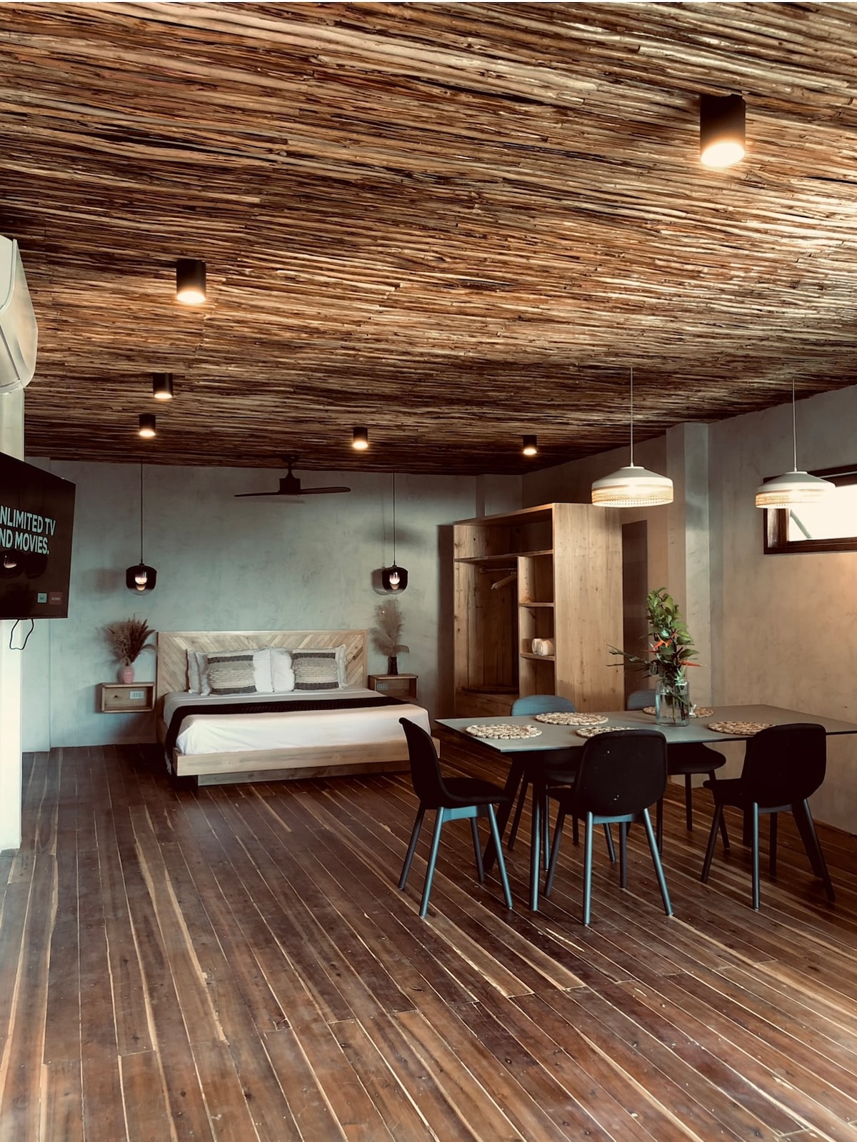 My stylish Loft addition behind our Villa called Casa Maligaya is now opening its doors for bookings. The loft is located right in the heart of El Nido town center and features 6m high ceilings, a floating king size bed and a 100“ cinema like TV. The listing is intended for 2 guests, but can also be paired with the full villa to bring the total capacity to up to 8 guest :)