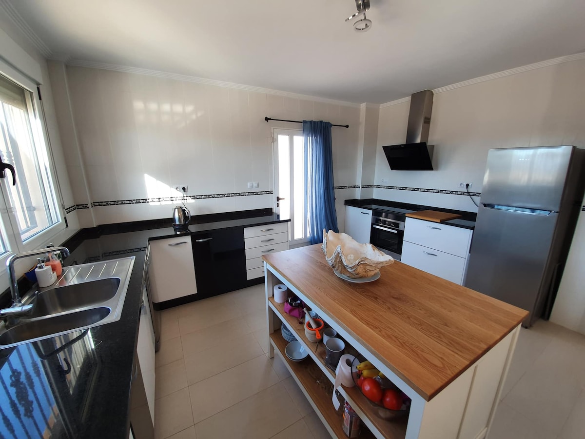 Disfruta de tus vacaciones en esta hermosa villa de un solo nivel situada en la urbanización La Montañosa, a solo 5 minutos en coche del codiciado pueblo de Hondón de las Nieves. La casa tiene 3 dormitorios, 2 baños, sala de estar y comedor, cocina totalmente equipada, porche delantero cubierto con vistas al jardín y al área de la piscina, un amplio solárium en la azotea con hermosas vistas a las montañas circundantes y una piscina de 8 x 4 metros.