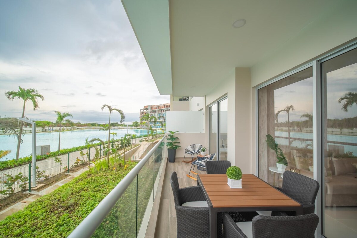 Apartamento de lujo en Cartagena en la primera Kristal Lagoons de Colombia paraíso de aguas cristalinas y playa de arena blanca en condominio Baia Krystal con vista excepcional a la laguna, disfruta de playa artificial con agua dulce y deportes náuticos, jacuzzi, turco, sauna, gimnasio, guarderia infantil, salon de eventos y las mejores y comodas amenidades de la zona. 5 minutos de las playas de Manzanillo en auto , 10 minutos del aeropuerto y 15 minutos del centro histórico