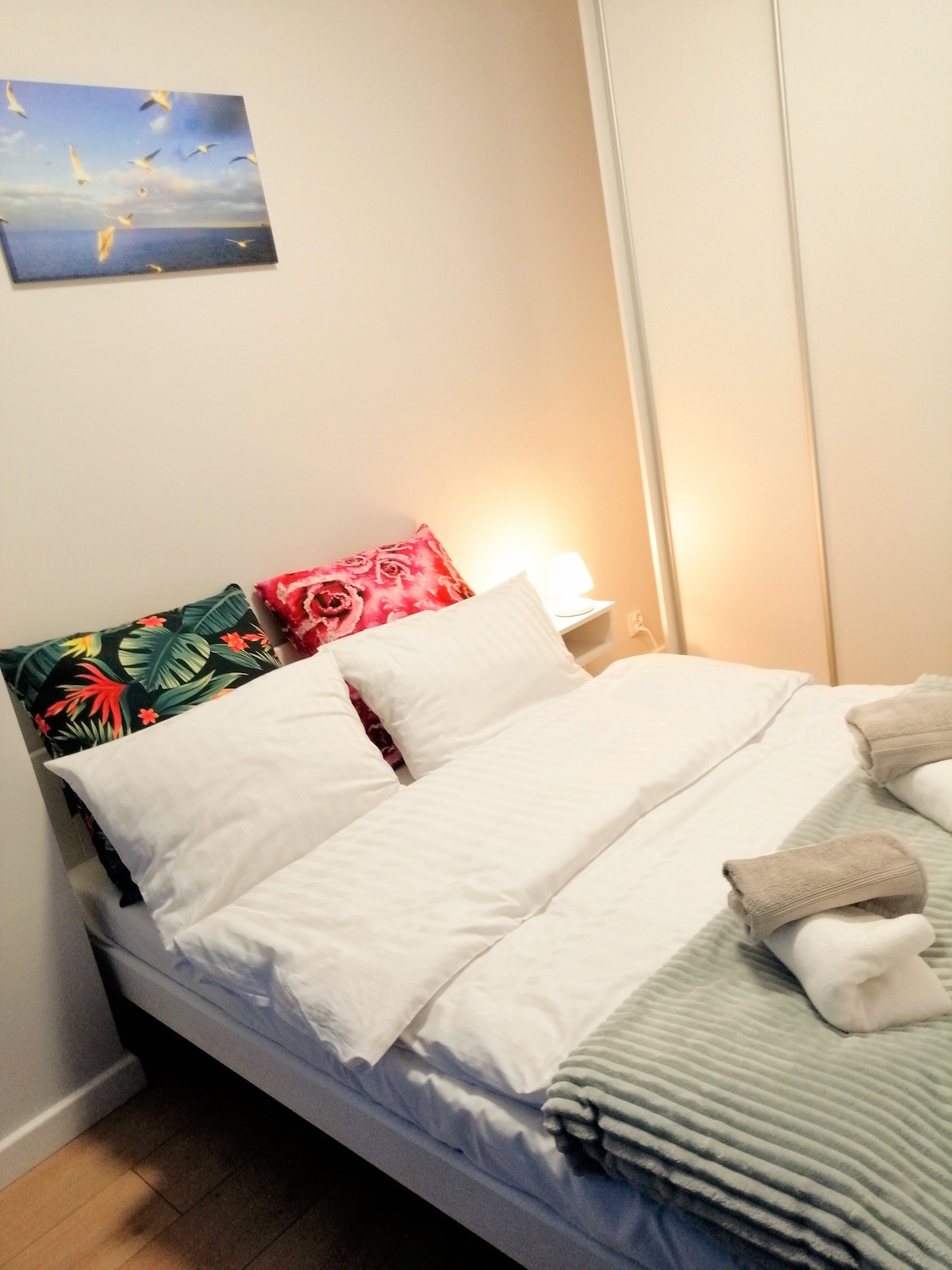cómodo y espacioso apartamento de 2 dormitorios con gran terraza en el nuevo edificio Kameralis situado en el casco antiguo. El apartamento está ubicado en el primer piso con ascensor. Consta de un salón con una cocina americana totalmente equipada. Dormitorio separado con cama doble grande (se puede separar en dos camas individuales separadas) Baño con cabina de ducha y inodoro. Puedo alojar 4 huéspedes con total comodidad. Una ventaja adicional del apartamento es una gran terraza con vistas al casco antiguo de Elbląg.