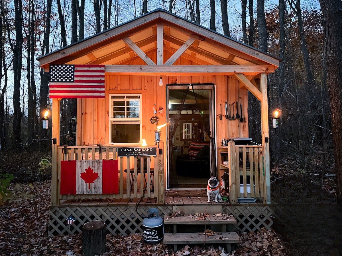 Pequeña cabaña ubicada a 10 minutos de Ellicottville, Nueva York. Escapada perfecta para un máximo de cuatro personas que buscan disfrutar del entorno y de la compañía de los demás. Un arroyo tranquilo corre directamente detrás de la cabaña, adormeciéndote por la noche y atrayendo a la vida silvestre en busca de un sorbo. Cocina totalmente equipada y parrilla de carbón. El espacio eficiente y elegante está diseñado pensando en tu comodidad y relajación. Fogata con leña incluida (trae encendedor).