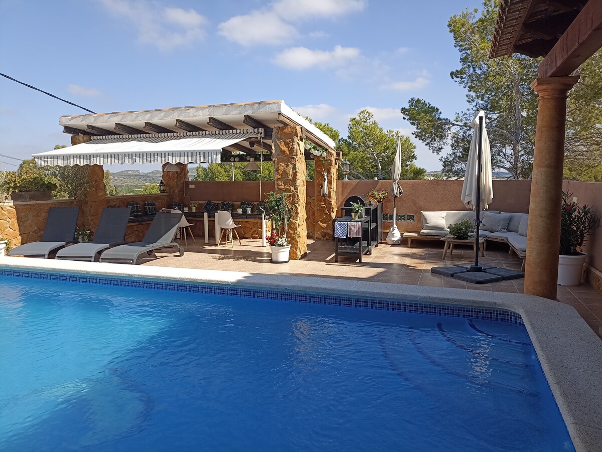 This beautiful exclusive luxury villa (220m2) with a newly installed pool heater is located at the pretigius Las Colinas Golf & Country Club. Guests can enjoy the private heated swimming pool (supplementary charge for the heating) and a large terrace space. It is located on an elevated plot with scenic views over the Mediterranean sea. The house has a modern look and feel, and is very spacious and light. 3 double bedrooms, all with en-suite bathrooms. Large kitchen with a nice cooking island.