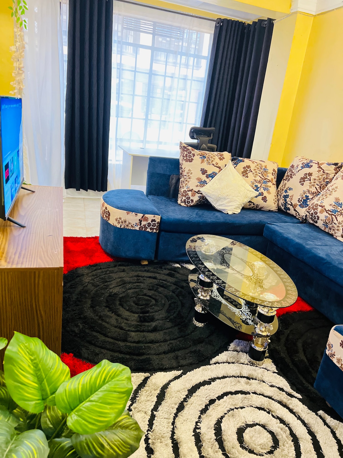 ¡La suite Orchards está diseñada para ofrecerte la comodidad que te mereces! Estamos ubicados en Majimbo, junto al hotel Gerish y el mercado majimbo. Todo el apartamento (Orchards Suites) tiene 18 suites similares, todas disponibles para reservaciones de estancias cortas y largas. Exquisitamente amueblado con una cama tamaño queen, te relajarás disfrutando de Internet de alta velocidad y TV inteligente de43pulgadas. El departamento está en el primer piso y es accesible a través de una escalera.