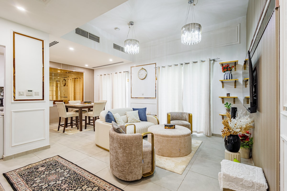 🏡 ¡Bienvenido a su lujosa villa de 3 dormitorios en Dubai Hills Estate! 🌴 Disfruta de tu piscina privada, un exuberante jardín y un entorno tranquilo, perfecto para relajarte. ☀️ Con acabados de alta gama, ventanas del suelo al techo e interiores elegantes, esta casa ofrece estilo y comodidad. ✨ Diseñado para huéspedes que buscan paz, belleza y una vida moderna. Tu escapada perfecta te espera.