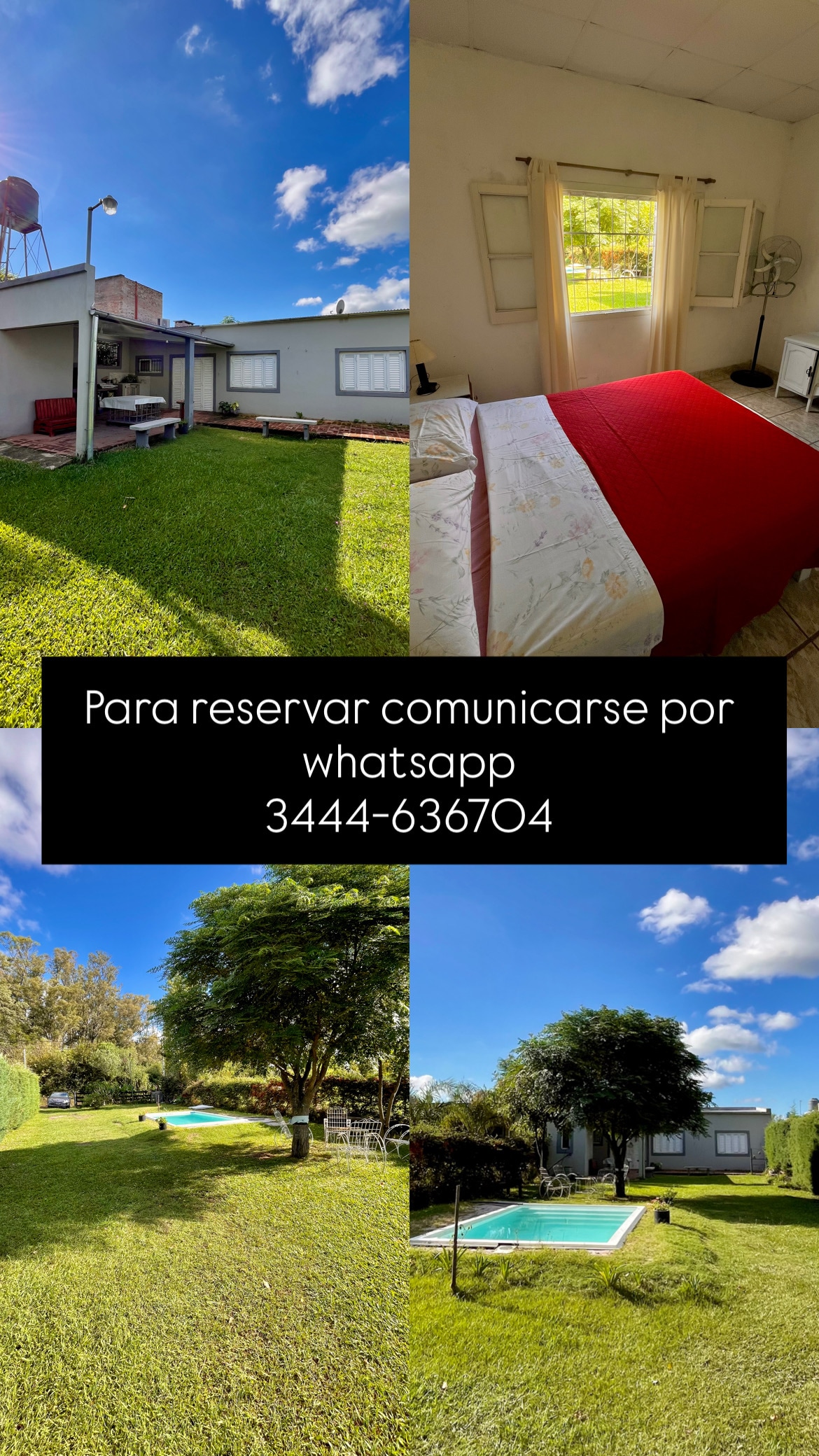 Espacio ideal para compartir en familia, amplio parque con pileta y juegos para niños. Tiene parrilla interior, vajilla para 12 personas. Se encuentra a media cuadra de Ruta 11, excelente acceso! En un barrio tranquilo pero a 10 minutos del centro de la ciudad!