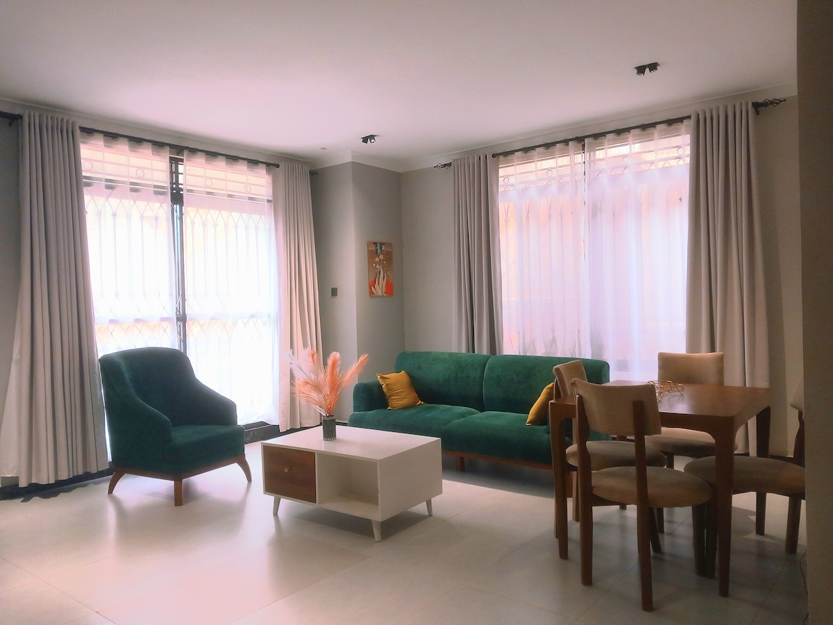 Su gran apartamento totalmente amueblado, atractivo,bien decorado, limpio y moderno, te dará vida a tu estancia de vacaciones en Kampala, Uganda. La casa tiene 4 dormitorios, una sala de estar,comedor , 3 duchas con agua caliente. Cocina bien equipada, un balcón con una buena vista del lago Victoria La casa entere se alquila en la sala de estar como un televisor inteligente de pantalla grande con DSTV.