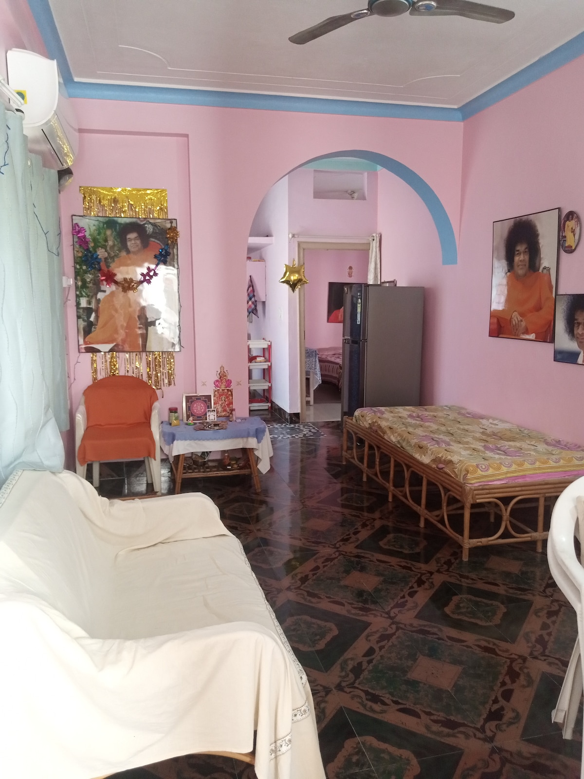 Desde este céntrico lugar, disfrutarás de un fácil acceso al Prashanthi Nilayam Ashram. La distancia a pie es de 5 minutos hasta la puerta Gopuram. Se trata de un apartamento extremadamente espacioso con 1300 pies cuadrados. Está muy limpio, tiene una cuna doble en uno de los dormitorios y también dos cunas individuales. Tiene una cocina funcional con conexión de gas y algunos utensilios. El baño tiene un géiser. El edificio también tiene ascensor y el apartamento está situado en la primera planta.