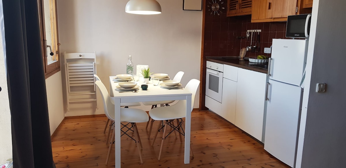 Apartamento con 1 habitación de matrimonio, 1 baño, salón comedor y cocina abierta. El'apartamento va totalmente equipado con ropa de cama, toallas, utensilios de cocina, lavaplatos, microondas, televisor, cafetera NESPRESSO, etc... Dispone de wifi gratuito, trastero y plazas de parking según disponibilidad. Los animales de compañía, son bienvenidos.