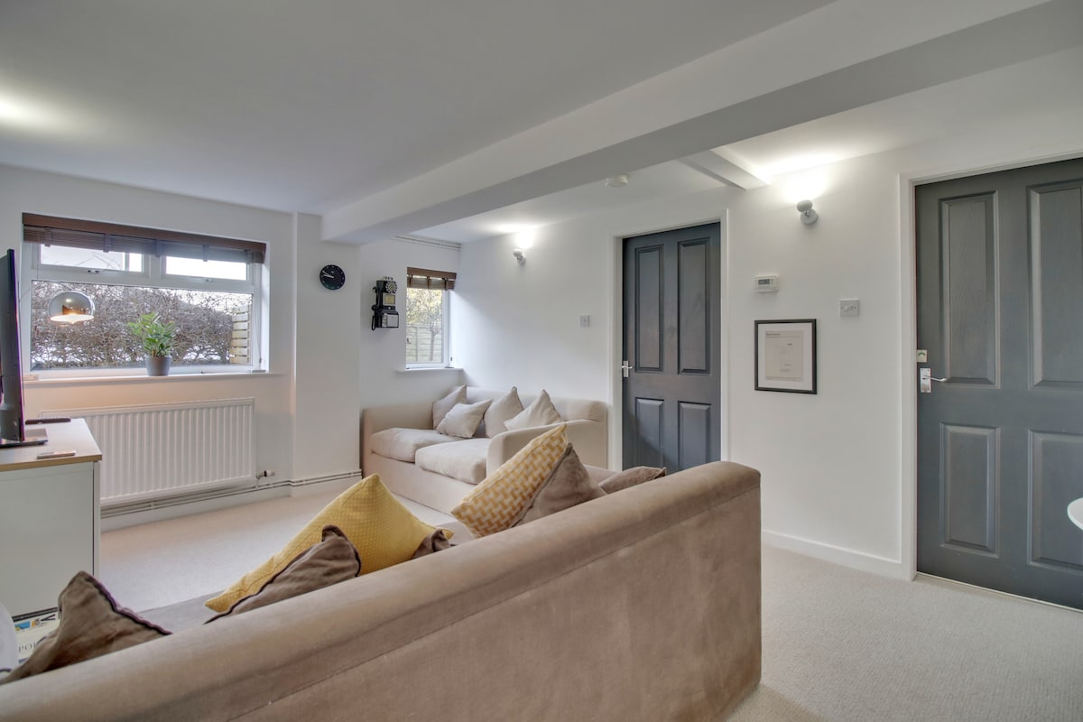 A lovely newly completed spacious self-contained studio Basement/garden flat with natural light. Own garden in a country side setting. Sun loungers provided. Kitchen has microwave, fridge, toaster & sink. 40” TV with Sky TV/Amazon Prime and Netflix. Double bed and sofa. Separate shower room with toilet, shower and basin. Close to Leeds/Bradford Airport and Trinity College. Please note this basement flat is accessed via 12 steps & may not be suitable for guests with mobility issu