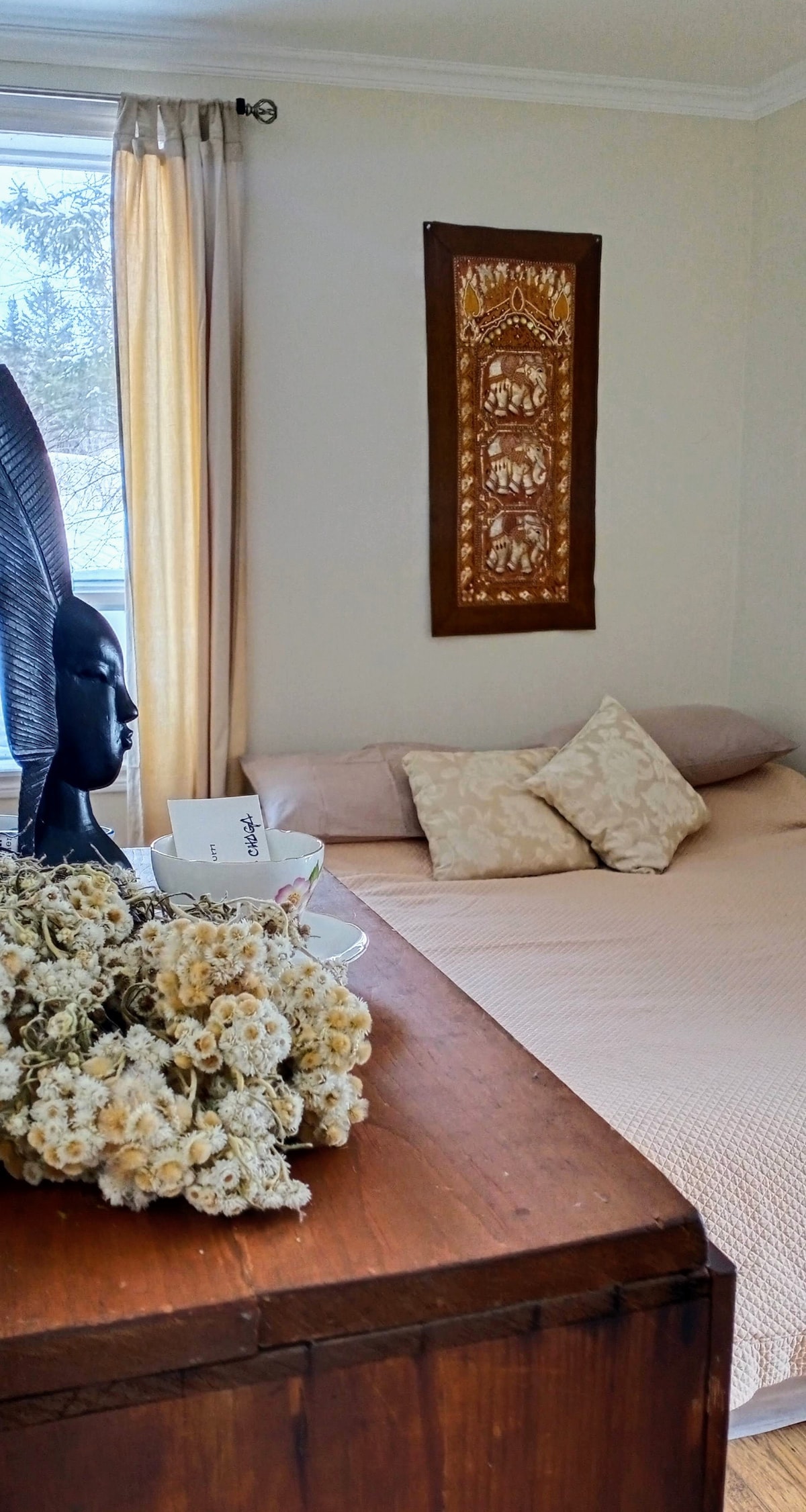 Situado en Saint-Étienne de Bolton en Estrie, Ch'i Terra es un territorio encantador ubicado entre montañas, lagos y ríos. Posibilidad de alojarse solo, con amigos o en pareja alquilando la casa, que ofrece tres dormitorios, una pequeña cocina, una chimenea de piedra y acceso al lago privado y al bosque. El precio indicado es para una ocupación doble. Si otras personas de su grupo lo acompañan y ocupan habitaciones, hay un cargo adicional de 90 $ por habitación adicional.