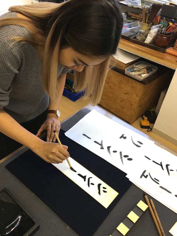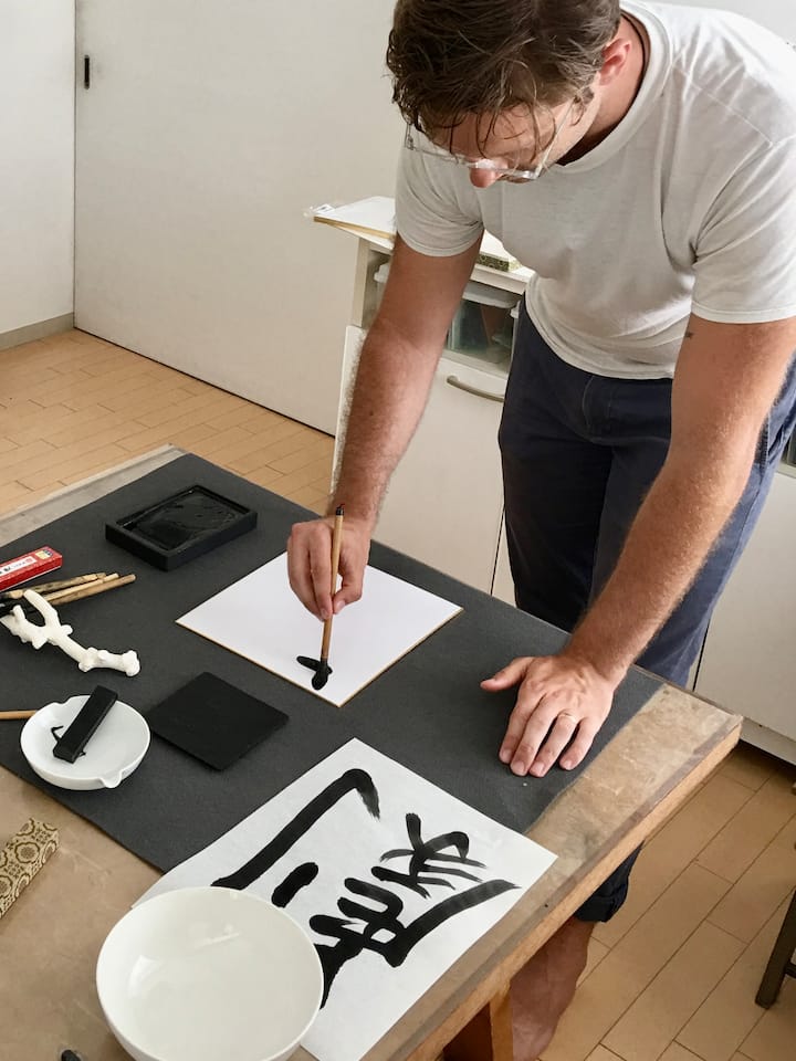 Soy un artista nacido y criado en Kioto. He estudiado caligrafía japonesa durante más de 40 años. Me he formado en varios medios artísticos, tanto en Japón como en el extranjero, y he creado una amplia gama de obras, como esculturas, pinturas, sumi-e (pintura con tinta de carbón), instalaciones y mosaicos. En 2009, expuse en Kioto, Tokio y Nueva York. Me encantaría enseñarte los conceptos básicos de la caligrafía japonesa tradicional y que también puedas crear tus propias obras de arte originales.