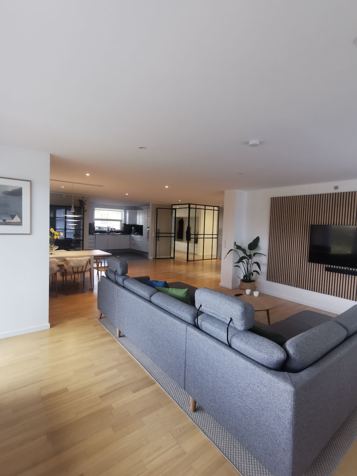 Lützens Palæ, recientemente renovado, 180 m2, directamente a Svendborgsund. Playa, puerto deportivo, vistas desde todas las habitaciones principales y el balcón. 5-10 min. al centro, cafeterías, restaurantes, teatro y música. Ascensor al pasillo, que da a la nueva cocina Swan, con isla de cocina, nevera de vino, etc., abierta a un gran salón y vistas al Sund. Baño, con lavabo doble y ducha doble. Gran torre/dormitorio 3ª planta: aseo, dormitorio con cama continental. Todo nuevo y de alta calidad, perfecto para darse un capricho. Lene y Mogens