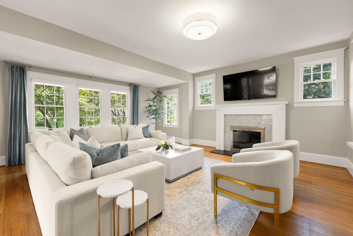 Bienvenido al Glebe Castle, una impresionante y meticulosamente cuidada casa construida en 1938. Esta amplia residencia de 4200 pies cuadrados está diseñada para la comodidad y la relajación. Ocuparás toda la propiedad, por lo que es un refugio ideal para familias o grupos pequeños de hasta 18 personas. Ubicada en el barrio de Waverly Hills de Arlington, VA, esta casa está a 10 minutos de DC en coche. Hay una parada de autobús justo enfrente de la propiedad o también puedes disfrutar de un agradable paseo de 15-20 minutos hasta la estación de metro de Ballston.