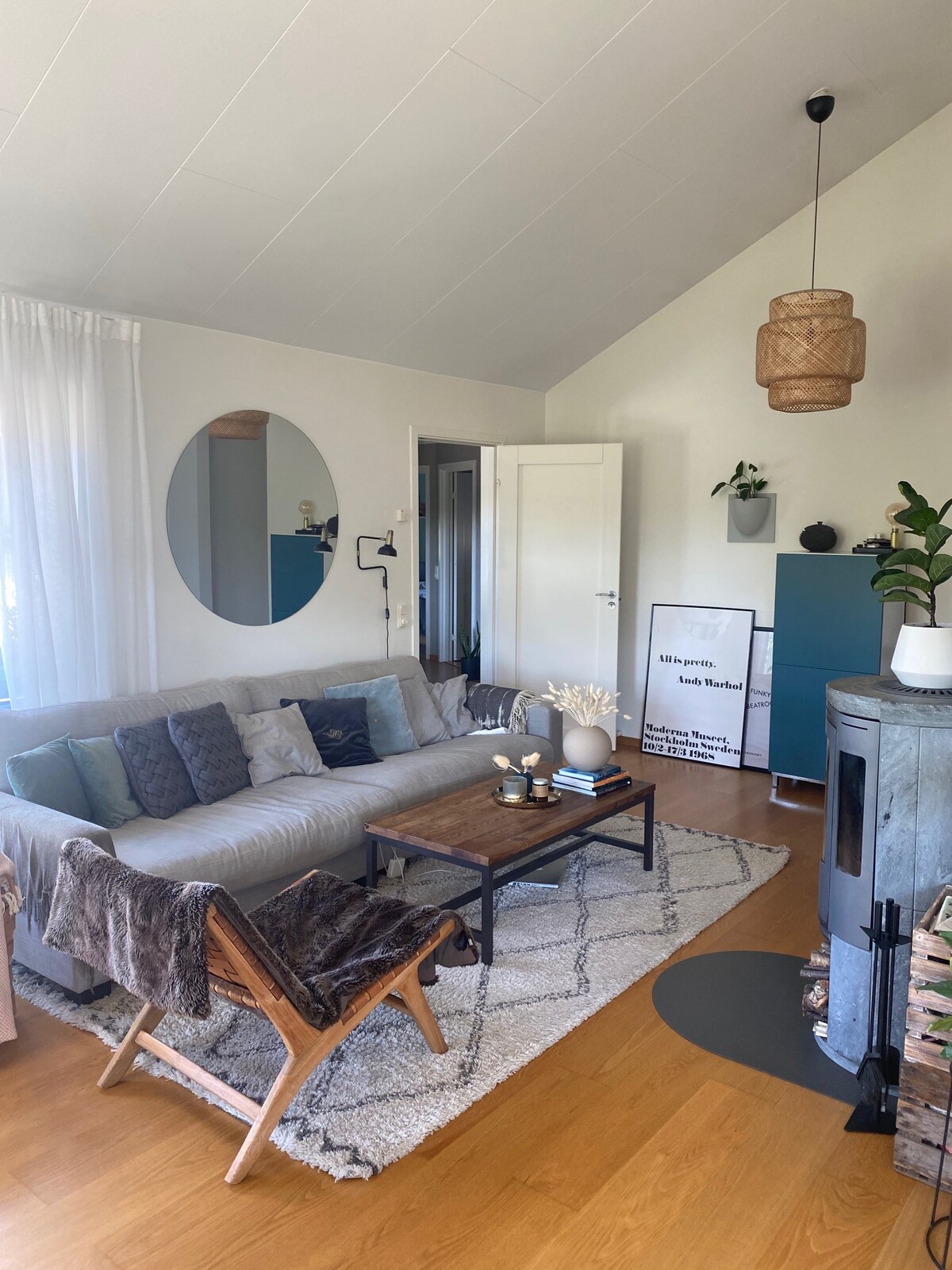 Bienvenido a nuestro apartamento cerca del mar y del bosque. Aquí puedes sentarte con un libro frente a la chimenea o simplemente descansar la vista en el mar y el prado frente a la casa. La proximidad al mar y la tranquilidad y calma es lo mejor de nuestra casa. Construimos la casa con la ayuda de familiares y amigos durante el invierno y la primavera de 2022-2023. La mayoría de los muebles de madera son de robles de la propiedad. Hemos construido una casa en la que nosotros mismos queremos vivir, ¡así que esperamos que la disfrutes!