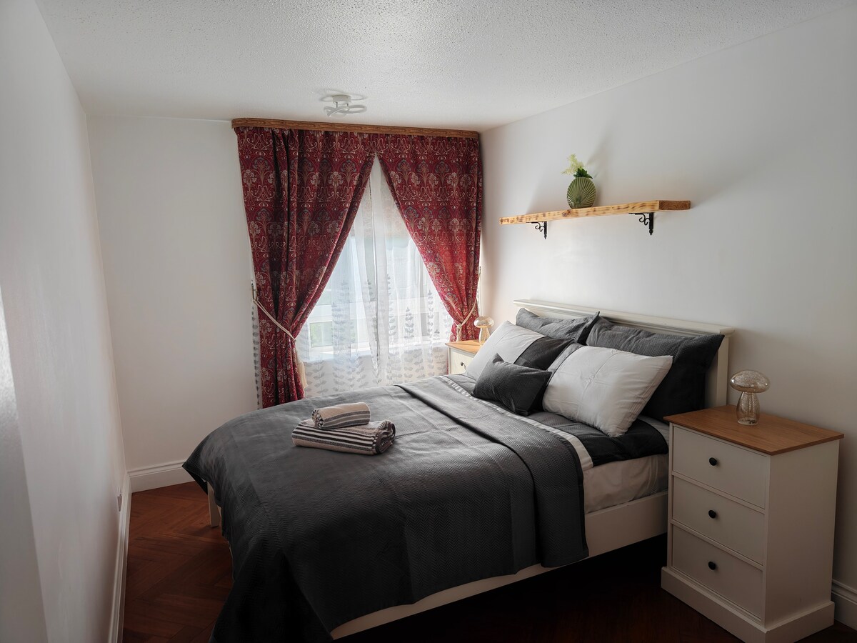 Piso de 2 dormitorios recientemente reformado, ideal para familias o viajeros solitarios. Disfruta de un luminoso salón de planta abierta con una cocina moderna totalmente equipada y una acogedora calefacción por suelo radiante en todas partes. Ambos dormitorios dobles ofrecen cómodas camas para una estancia tranquila. Hay estacionamiento gratuito disponible justo afuera. A solo 10 minutos en coche del centro comercial East Kilbride, las estaciones de autobús y tren, y a 25 minutos del centro de la ciudad de Glasgow. El Hospital Hairmyres está a solo 15 minutos.