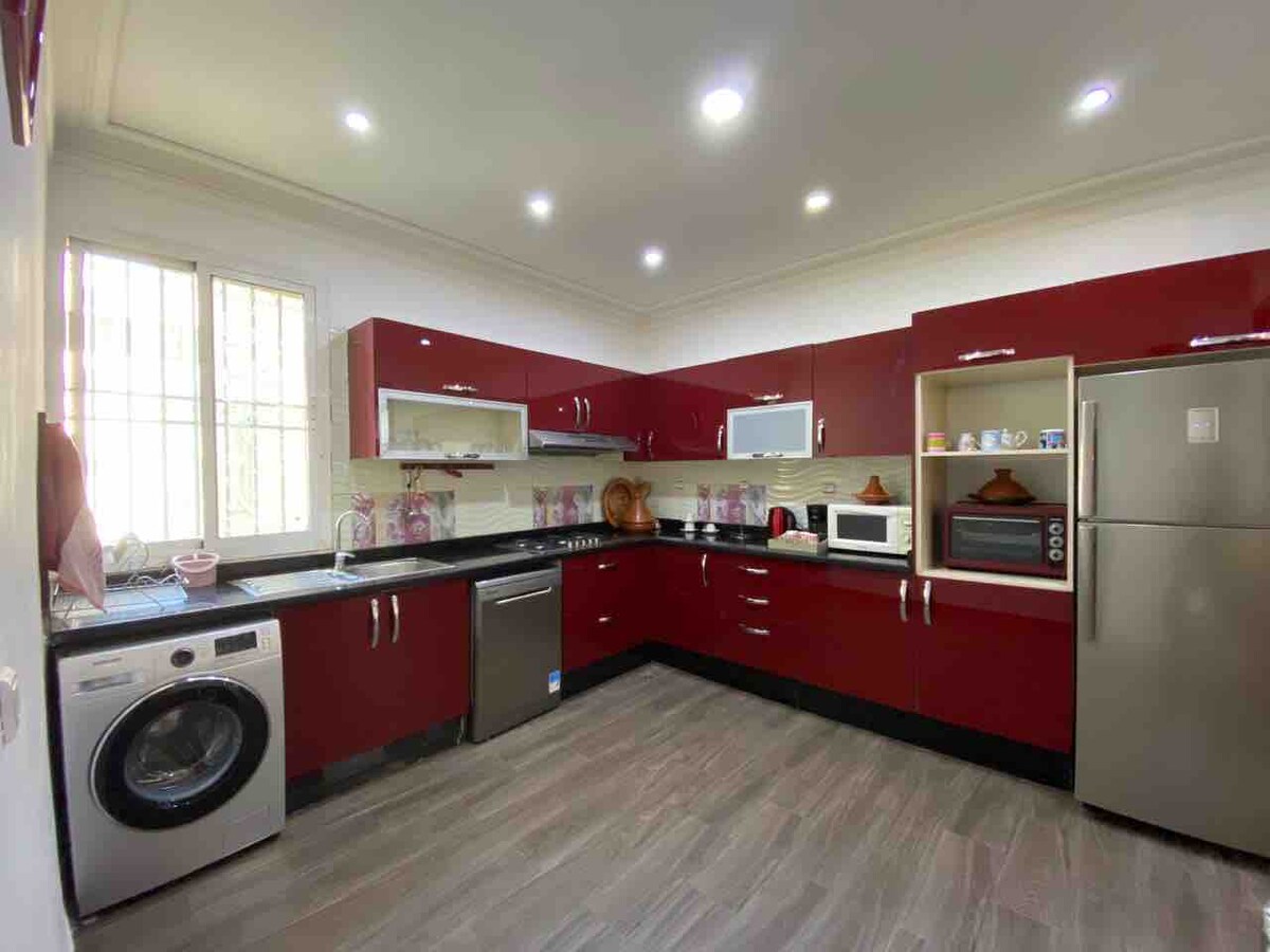 Disfrute de una estancia cómoda en este alojamiento moderno y bien ubicado, con aire acondicionado/calefacción, Wi-Fi 50Mb y TV con Netflix y Shahid incluidos ⚠️ Importante: las parejas marroquíes 🇲🇦 solteras no están permitidas 📍 Situación • A 170 metros de la Clínica ARRAZI (2 minutos a pie) • A 20 minutos del aeropuerto (taxi ≈ 150 DH) • A 11 minutos en auto del complejo deportivo (taxi ≈ 10–13 DH) • A 15 minutos en auto del centro de la ciudad (taxi ≈ 14–16 DH) • A 22 minutos en auto de la medina (taxi ≈ 30–33 DH)