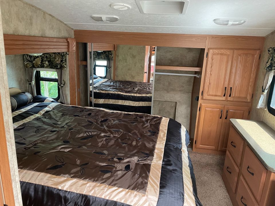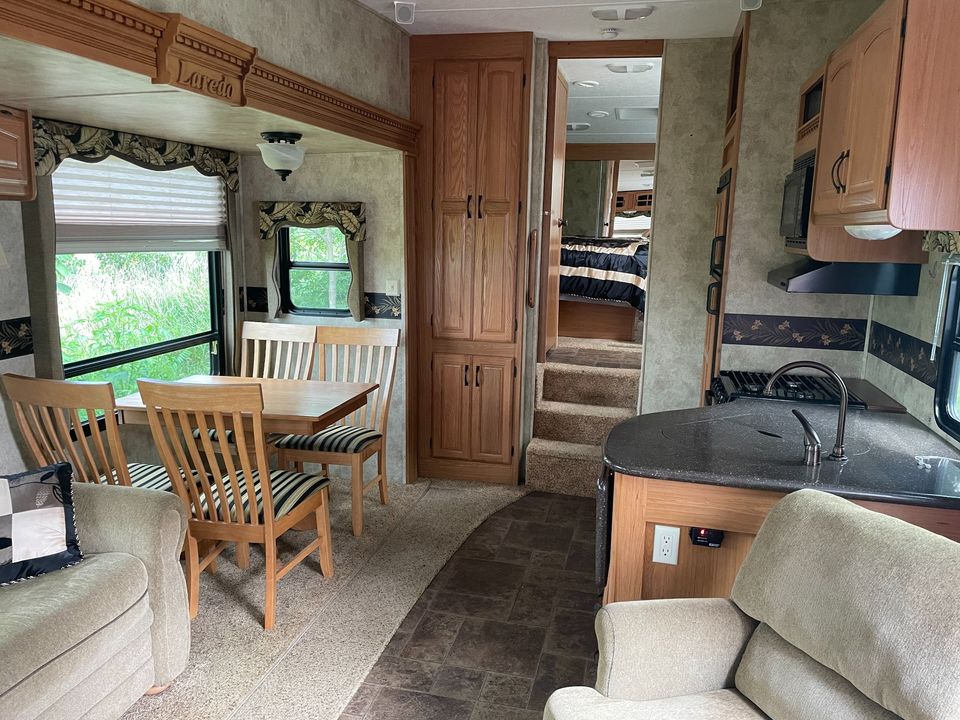 Se trata de una caravana de 32' 2014 en un entorno tranquilo y agradable. Autónomo. Privado de 28 acres con un lago de 11,5 acres. Otros dos campings y la casa principal en el propiedad. De temporada del 1 de abril al 30 de octubre, dependiendo del clima. Tiene 3 toboganes. Fogata disponible. No se puede fumar en el INTERIOR DE la caravana. Cerca de la Interestatal 81, Siracusa, Binghamton, Ithaca y puntos norte y sur. Restaurantes locales, teatro de verano, tiendas, SUNY Cortland, Cornell University, Ithaca College, TC3, etc.
