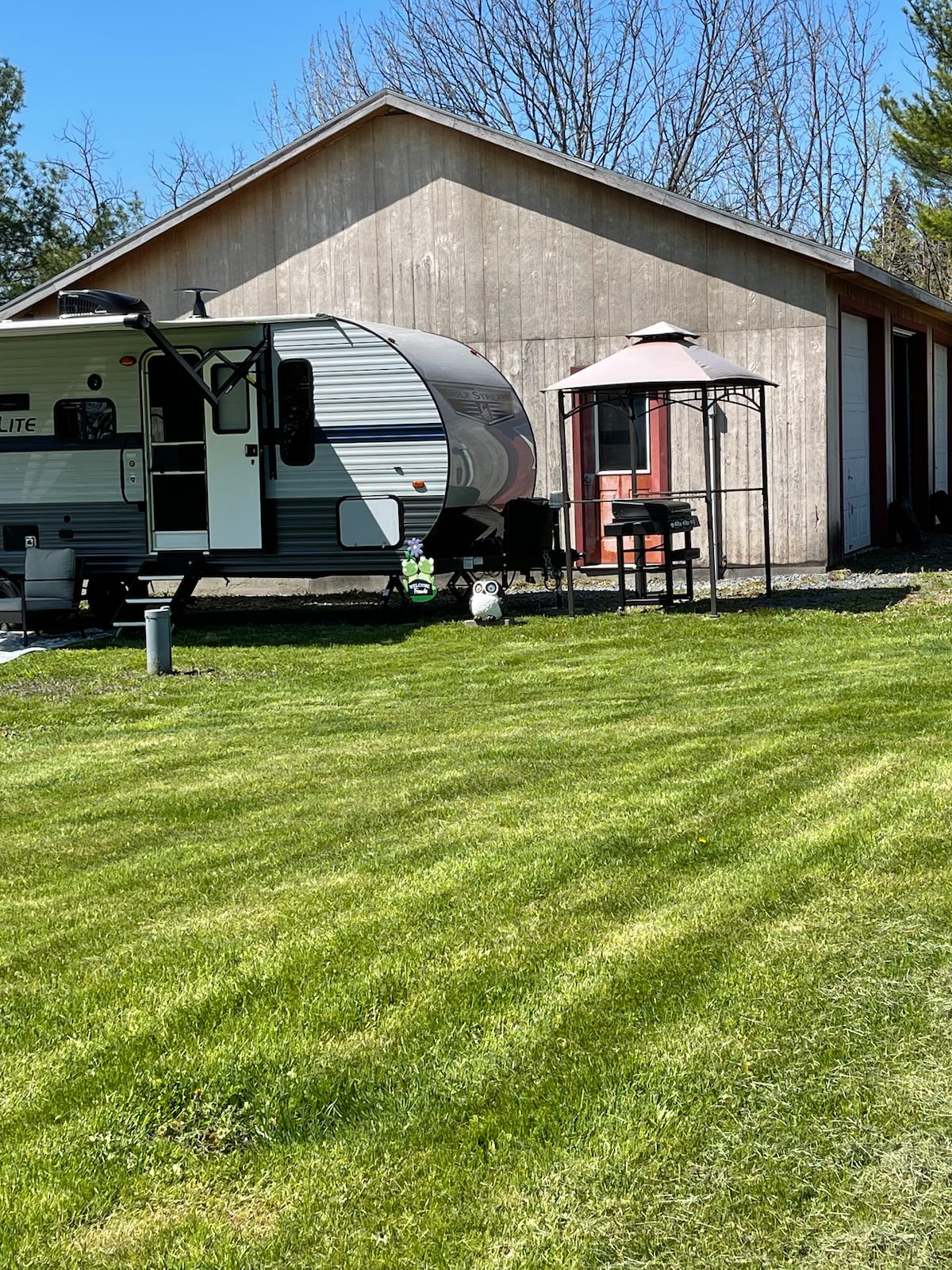 ¡Escápate de lo ordinario y experimenta una estadía única en nuestro hermoso Airstream! Ubicado en el corazón de la ruta del vino finger Lakes, este encantador remolque combina un atractivo retro con comodidades modernas para una escapada inolvidable. Espacio cuidadosamente diseñado con cómodas camas individuales, acogedora sala de estar y cocina pequeña bien equipada con nevera, estufa y microondas. Wifi, aire acondicionado/calefacción y baño privado con ducha. Patio con parrilla eléctrica, bañera de hidromasaje y fogata. ¡Retiro único en la naturaleza!