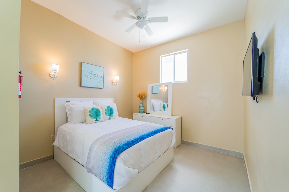 Pelican View apartments offers unrivalled beach access and a truly unique and tranquil way to experience Providenciales. Located in Blue Hills you’ll quickly be lulled into the local rhythm of island life as you sit on your 2nd floor terrace enjoying the spectacular views and listening to the waves crashing on shore. This 2-bed, 1-ba apartment is comfortably appointed with true up-cycled charm. Peppered throughout are some treasured vintage pieces to make it feel like your home away from home.