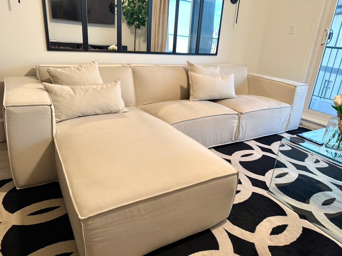 Hermoso apartamento privado en el sótano de un dormitorio con entrada independiente, amplio y céntrico. A 5 minutos a pie de centros comerciales y parques y a 1 minuto a pie de la parada de autobús. Apartamento privado con todas las comodidades modernas; espacio de trabajo sentado/de pie, electrodomésticos de cocina modernos, amplio salón, comedor y cocina, nevera estándar con dispensador de agua/hielo, lavandería privada. Wifi ilimitado de alta velocidad, Telus, Netflix, Amazon/Disney+ en la nueva Smart TV. Agua de bienvenida/café/té y crema.