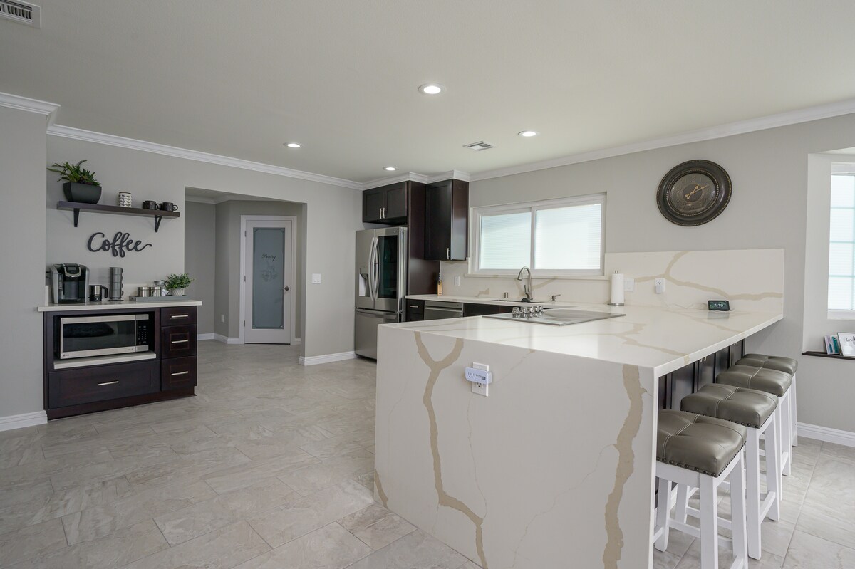 En esta hermosa casa, encontrarás cada habitación equipada con una TV de pantalla plana, espejo de cuerpo entero, ventilador de techo y una cama muy cómoda. La cocina está completamente equipada para tu conveniencia. Afuera, hay hay mucho espacio para todos tus juguetes, incluidos botes, casas rodantes, motos acuáticas, etc. El patio trasero cuenta con un patio completo con barbacoa y muebles cómodos. Esta casa es apta para mascotas, así que tus bebés peludos también son bienvenidos.