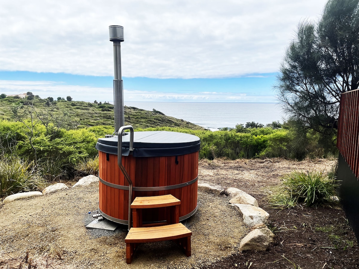Relájate en este refugio romántico especial en nuestro moderno oasis costero en la hermosa bahía de Binalong en la bahía de Fires. Perfectamente diseñado para parejas, nuestro refugio de nueva construcción ofrece impresionantes vistas al mar, una sauna privada, ducha al aire libre y una bañera al aire libre (inmersión fría o caliente) con vistas para vivir, ¡ideal para relajarse bajo las estrellas! El acceso es a través de las escaleras de roca en la parte delantera de la propiedad. Relájate junto al fuego con las olas como banda sonora en la impresionante costa este de Tasmania.