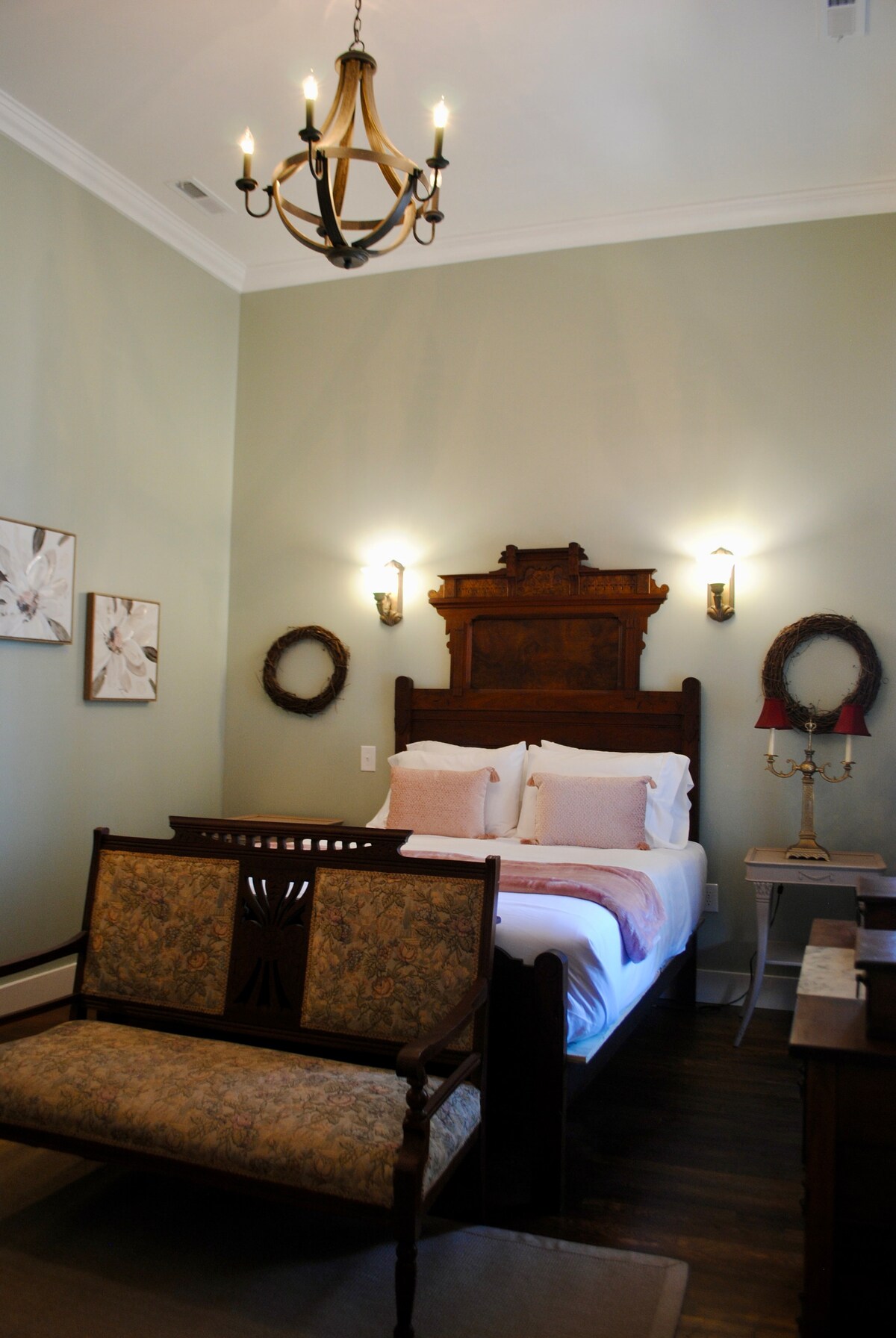 El barrio de la princesa novia es tu romántica suite de luna de miel. Esta habitación con luz natural es una gran suite principal con vistas a los jardines traseros y al sitio de ceremonias para bodas. Una habitación verdaderamente romántica que evoca una habitación moderna de estilo parisino. 300 pies cuadrados de lujo con ducha a ras de suelo tipo spa. Sumérgete en nuestro monograma Boutique Auberge y disfruta de un aroma embriagador de nuestro jabón de recuerdo hecho exclusivamente para Boutique Auberge. Desayuno caliente incluido bajo petición.