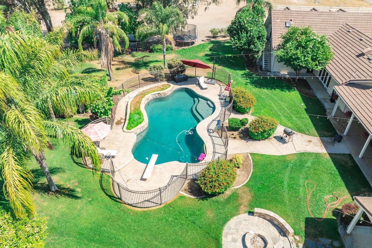 Maravillosa vida rural cerca de North Fresno y Madera en el centro de California. Excelente ubicación para explorar las montañas de Sierra Nevada, Yosemite, Kings Canyon, Central Coast Wine Country. A menos de 3 horas en auto de Silicon Valley y Sacramento. Solo 1 hora y media a la estación de esquí China Peak. A poca distancia en auto del Chukchansi Gold Casino y el Table Mountain Casino. Cerca de Valley Children 's Hospital. También disfruta de bonitas bodegas locales. O...simplemente cuelga en la piscina de agua salada. Perfecto para la primavera o el verano.