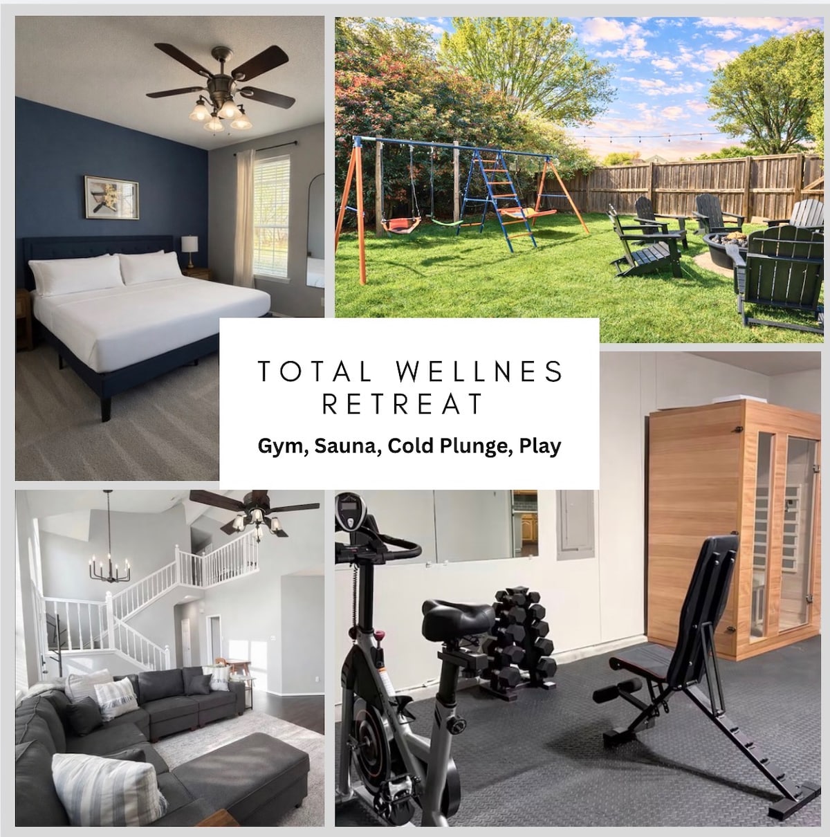 Piscina, jacuzzi, sauna y baño de agua fría: el único refugio de bienestar privado de Dallas con los cuatro, además de gimnasio al aire libre y putting green. 3 dormitorios, capacidad para 7 personas. Cocina completa, wifi rápido, estacionamiento gratuito, entrada sin llave. Estación de entretenimiento al aire libre con parrilla incorporada, horno de pizza de leña y televisor al aire libre. Televisores inteligentes, espacio de trabajo dedicado. A 15 minutos del centro de Dallas. Fácil acceso desde todas las carreteras principales. Reserva hoy mismo tu retiro de bienestar.