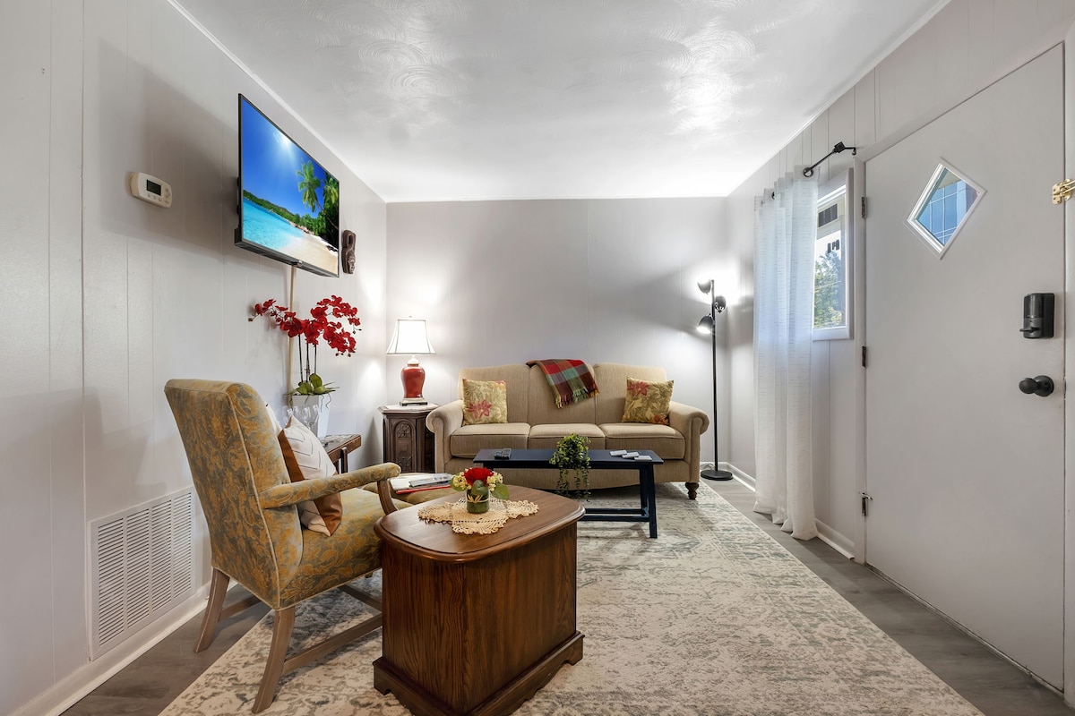 Ubicado en el sereno barrio de Forest Heights de Tallahassee, nuestro encantador refugio de 1 dormitorio y 1 baño es perfecto para parejas, profesionales, estudiantes y para cualquiera que busque una escapada. Relájate en una gran sala de estar con un lujoso sofá, TV inteligente y un ambiente acogedor. Relájate en una cama con control remoto con funciones de masaje y posturas de comodidad personalizables. Disfruta de un patio con tumbonas y una zona de parrilla, el lugar perfecto para relajarse bajo las estrellas.