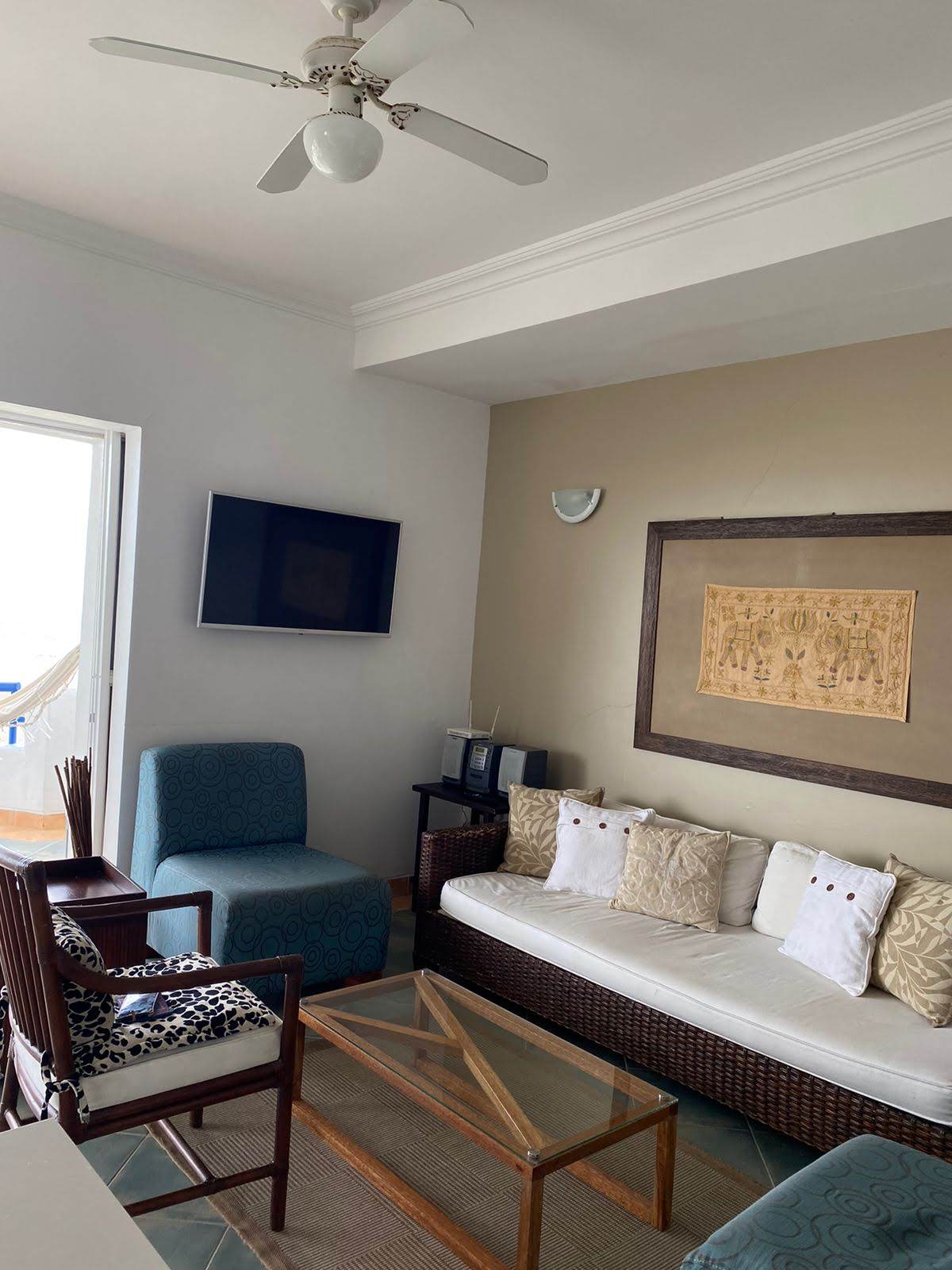Lindo departamento para uso familiar (prohibidas las reuniones y fiestas) Por seguridad, todo huésped porta brazalete en el conjunto, deben cancelar $10 por persona al ingresar. WiFi, SmartTV, un dormitorio master con AC y un dormitorio pequeño. En el mejor sector dentro de Casablanca frente al mar, ideal para disfrutar unas vacaciones seguras y relajadas. Cuenta con un amplio balcón con vista a la piscina. El conjunto cuenta con dos piscinas grandes, seguridad permanente y guardiania