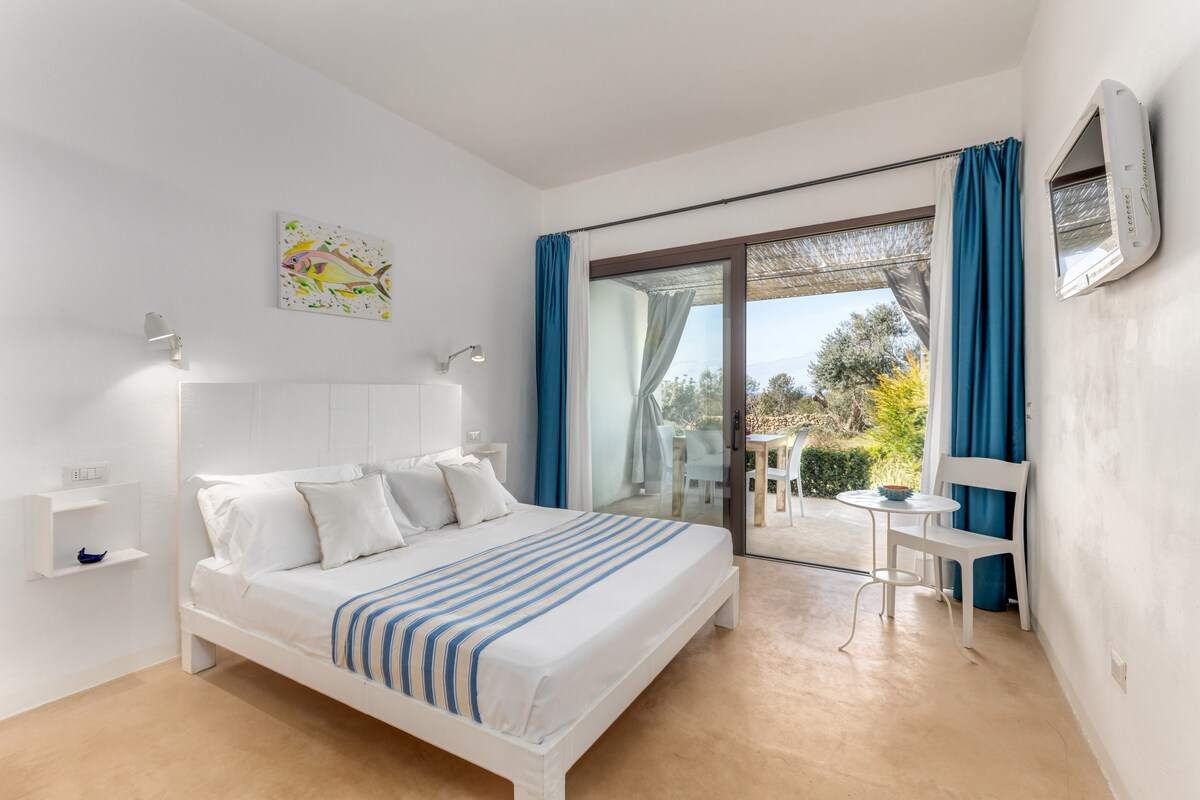La habitación doble «Nova» se encuentra en el núcleo original de la granja y tiene un baño accesible para personas con discapacidad. Aquí el privilegio es el silencio, el placer se da por la tranquilidad absoluta y la posibilidad de sumergirse en el campo y el jardín Generosamente espaciado, amueblado con buen gusto y equipado con todas las comodidades, se caracterizan por un ambiente más hogareño y garantizan tranquilidad y privacidad. Cuenta con una amplia terraza equipada donde se puede disfrutar la vista al mar.