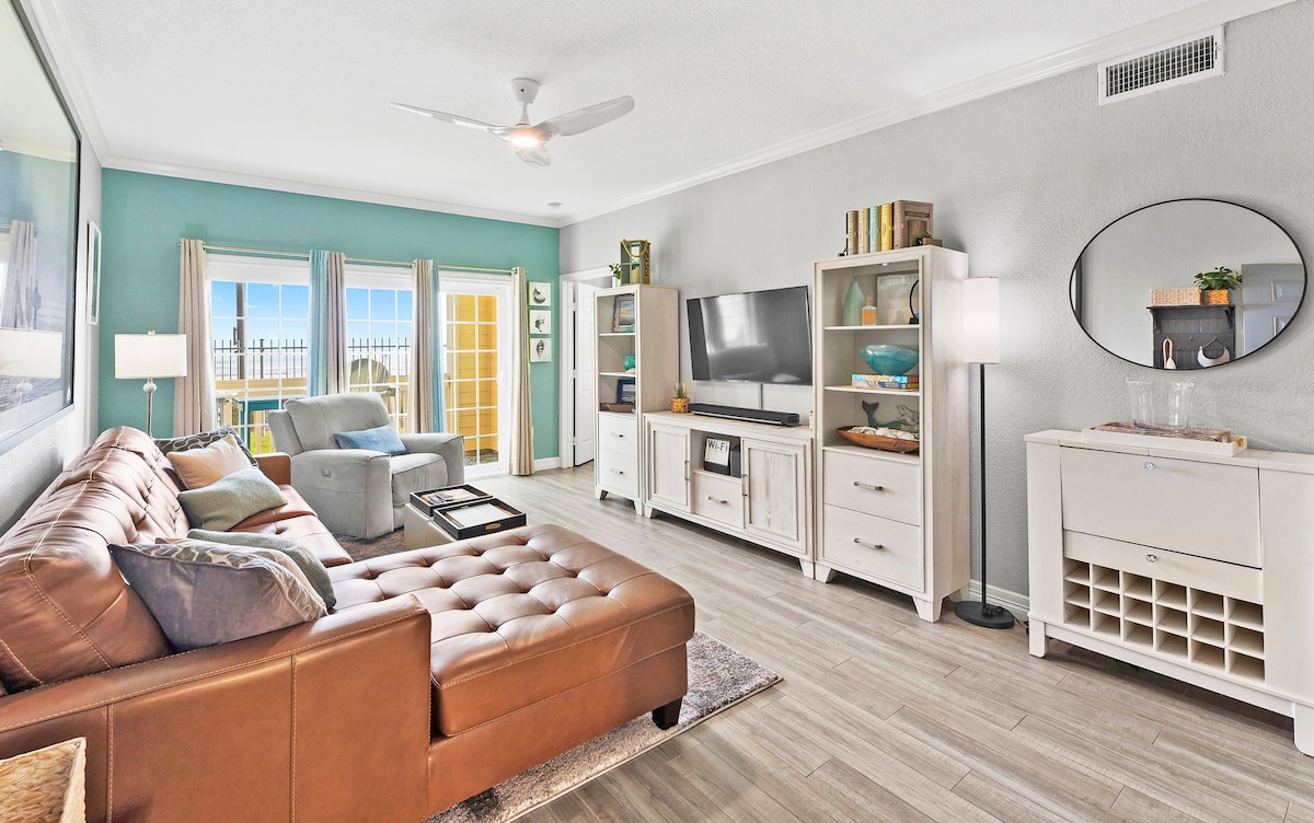 ¡Este luminoso y espacioso alojamiento de 2 dormitorios y 1 baño será tu lugar feliz! Un dormitorio es el principal de la planta baja y el otro es un loft al final de la escalera de caracol. Vistas espectaculares desde el balcón, la sala de estar y el dormitorio principal. Capacidad para 6 personas cómodamente. Los Dawn Condos se encuentran directamente en el malecón con 2 piscinas del centro vacacional (una climatizada) y jacuzzi. The Dawn Condominiums fue galardonado como el mejor alquiler de condominios en Galveston en 2023.