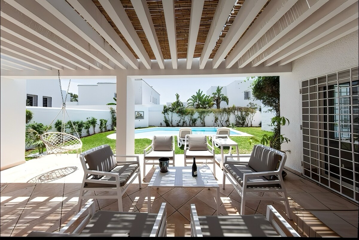 Disfrute de una estancia única en esta casa bohemia chic con piscina privada, situada en una residencia segura en el corazón del suburbio más popular de Túnez: Cartago, Sidi Bou Saïd, La Marsa y Gammarth están a dos pasos. 🌊 Vista panorámica del Mediterráneo desde la casa. 🏨 Ubicado en el espacio hotelero Golden Carthage con acceso al spa y al gimnasio. ⛳ A solo 5 minutos del campo de golf The Residence. Un entorno ideal para relajarse, entre autenticidad, comodidad y refinamiento.