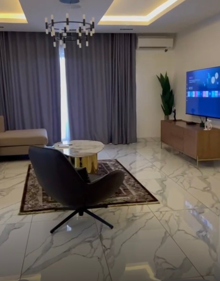 Disfruta de una experiencia elegante en este apartamento céntrico. Un apartamento de 2 dormitorios con características como PlayStation 5 y últimos juegos bajo petición, reloj antiguo del padrino, TV de 65 pulgadas. También ofrecemos seguridad estricta, vigilancia las 24 horas, los 7 días de la semana, energía las 24 horas, los 7 días de la semana con generador de respaldo, WIFI, estacionamiento gratuito, proporcionando a los residentes una sensación de seguridad y tranquilidad. Tenemos los mejores centros comerciales y clubes cercanos como 4U Supermarket, H-Medix, supermercado Pay Greens, etc.