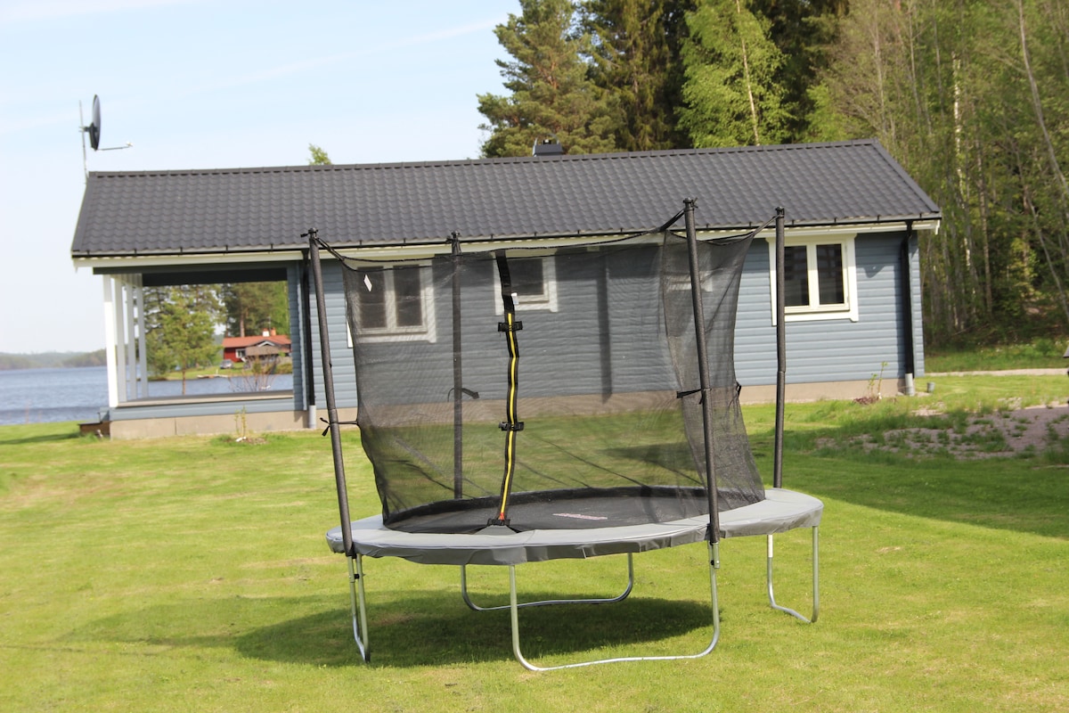 A quiet and refreshing stay right on the lake surrounded by nature, far from city noise, yet just 20 mins from a supermarket and 30 mins from Falun. Perfect for families, couples, or anyone who enjoys nature. The lawn is ideal for relaxing, dining outdoors, BBQs, or simply watching the sunrise and sunset with a cup of your favorite drink in hand. On-site fun: • Table tennis • Swimming • BBQ • Trampoline • 3 boats & a kayak • Fishing • Peaceful walks and hiking nearby …and much more to explore!