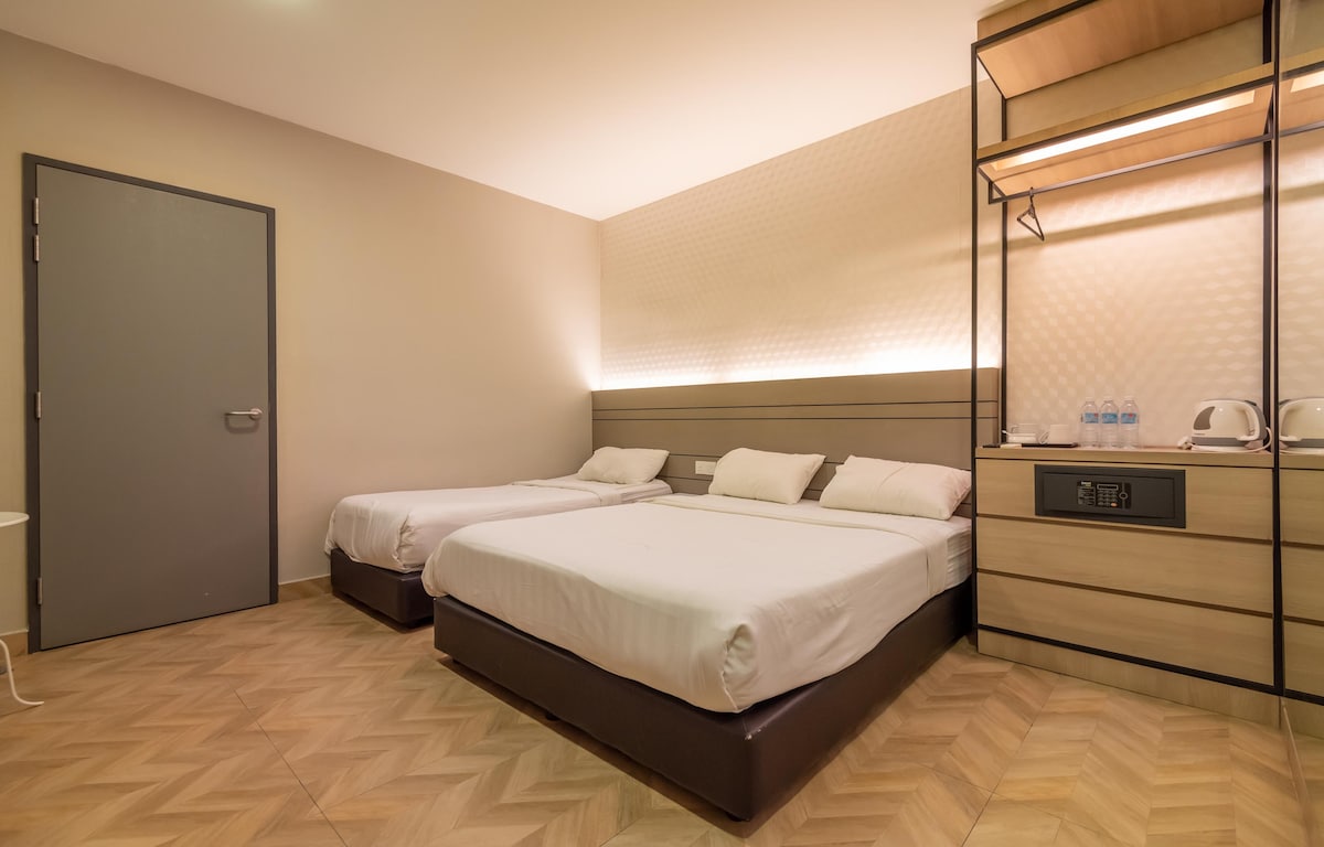 Habitación triple ubicada en el hotel First World Tower 3,viene con una cama tamaño queen y una cama individual.