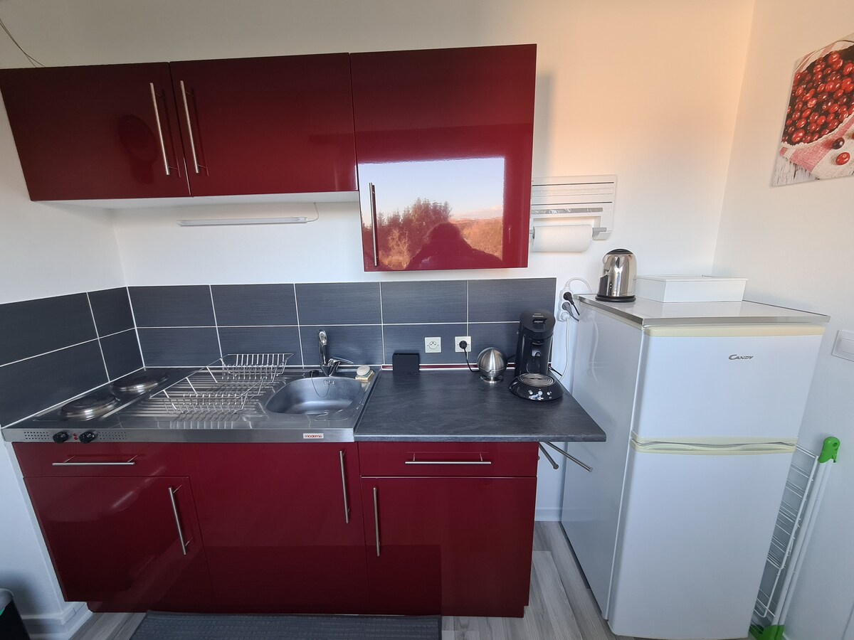 En el seno de una residencia privada, muy tranquila y cuidadosamente mantenida, F1 de 30 metros cuadrados moderno en el tercer y último piso, práctico, cálido, cerca de una gran zona comercial, puede acomodar a dos viajeros. Situado a 10 minutos de Alemania, tt confort, 1 cama doble, wifi, TV, aparcamiento privado, baño con bañera/ducha, secador de pelo, espejo de aumento y lavadora, cocina equipada con microondas, horno, cafetera «senséo», tostadora, hervidor... 1 cama supletoria disponible.