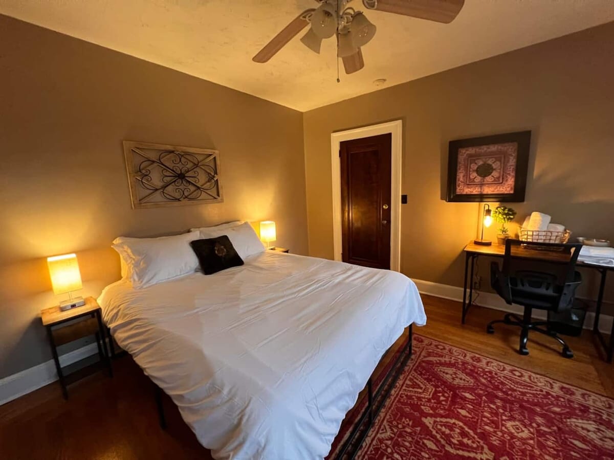 Nuestro bungalow de estilo Arts & Crafts de 1915 ofrece una espaciosa suite con entrada independiente, estacionamiento en la calle, solárium, dormitorio con cama king, baño privado, cocina pequeña con nevera, microondas, cafetera y tostadora. Relájate en la cama con un televisor de alta definición de 40 pulgadas con Amazon Prime, HBO Max, Netflix y cable prémium. Disfruta de jardines privados para tomar el sol, leer un libro o tomar una taza de café. A poca distancia en coche de 4 viñedos, el teatro y la estación de tren.