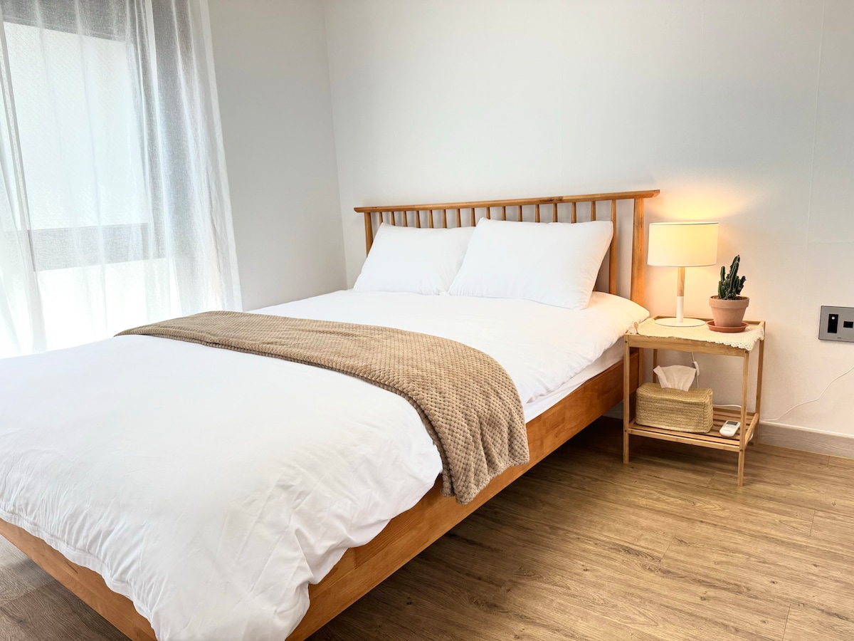 La ubicación de la pensión está a 2 minutos a pie de la playa Es bueno para descansar mientras miras el mar. La cama es de tamaño queen. Hay ruido entre pisos, así que tenga en cuenta al reservar si es sensible. Hay muchos lugares de interés como Hanrim Park, Osulloc, Thinking Garden, Hwansang Forest, Gotjawal, The Ma Park, restaurantes populares y cafeterías, y es muy bueno para conducir a lo largo de la carretera costera para pescar en Chagwido, usar el transbordador para ir a Marado desde Mosulpo, y Songaksan Yongmeori Coast, etc.
