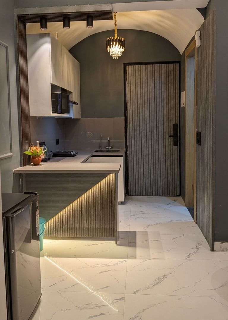 El primer apartamento de 2 Bhk que cumple con todos los requisitos ✨ - 2 dormitorios ( dormitorio principal, segundo dormitorio). - Dos camas tamaño king. - Una amplia sala de estar con una cómoda disposición de asientos. - 2 baños ( 1 en cada uno de los dormitorios). - Cocina pequeña (con todos los utensilios básicos de cocina disponibles y servicios abastecidos, es el lugar perfecto para preparar tus comidas favoritas) - Una zona de balcón compartido que conecta con el apartamento, que puede ser el espacio perfecto para tus paseos nocturnos. ¡Reserva ahora!