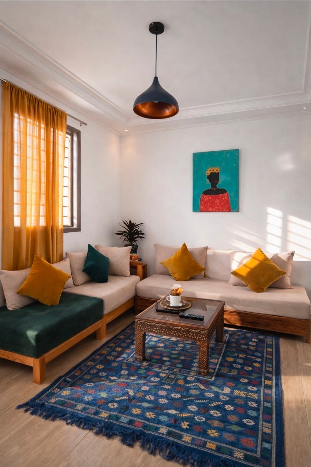 Relájese en pareja, en familia o con amigos en el ambiente cálido de nuestro apartamento situado en uno de los barrios elegantes de Esauira El apartamento está totalmente amueblado con todo lo necesario. Dos dormitorios con cómodas camas, una cocina totalmente equipada y una acogedora sala de estar. El apartamento también cuenta con conexión Wi-Fi rápida perfecta para aquellos que necesitan mantenerse conectados y trabajar Estamos deseando recibirle 😍